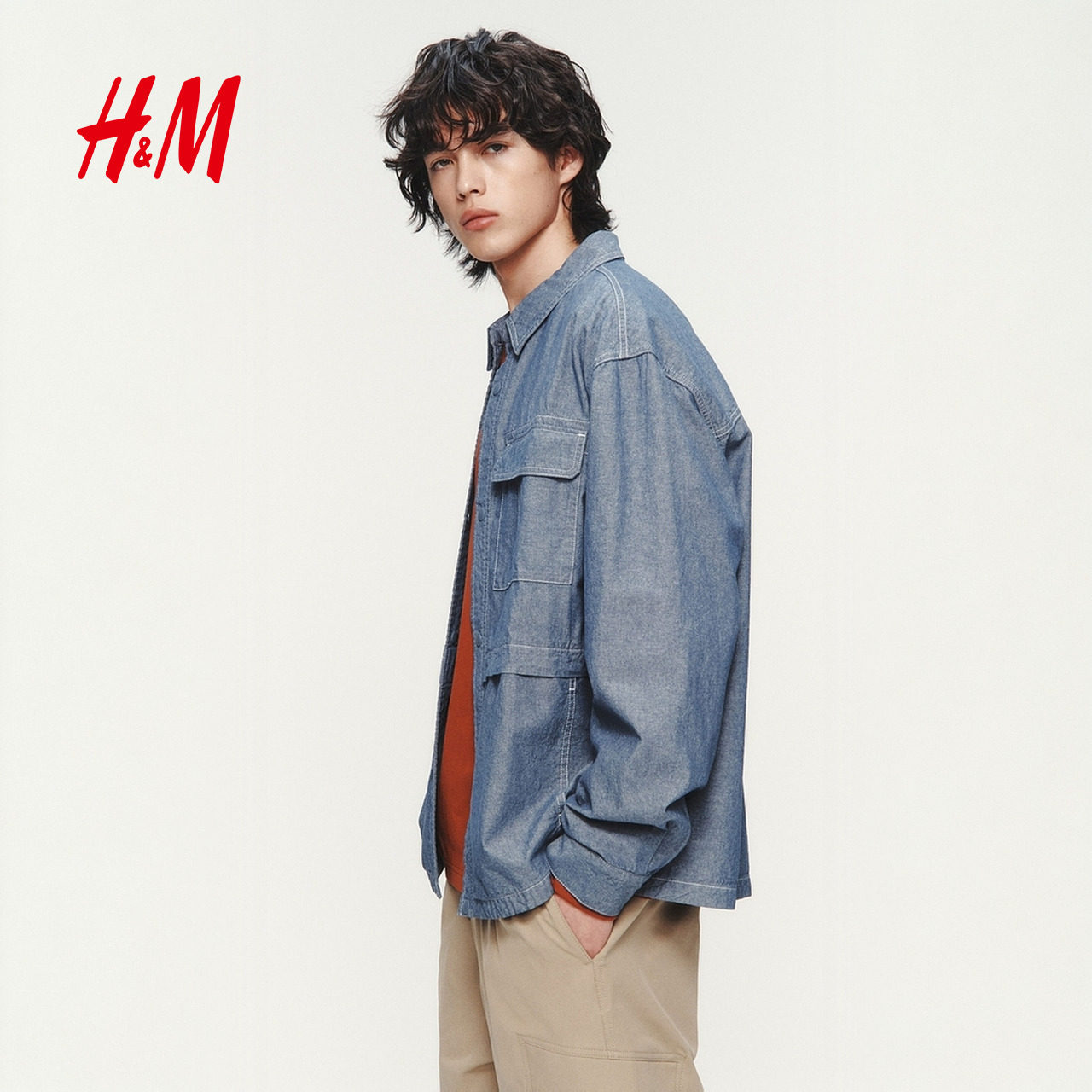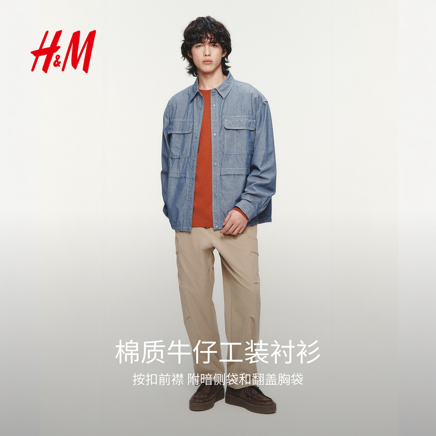 HM男装衬衫2026春季新款潮流宽松版型实用工装多口袋衬衫1326426