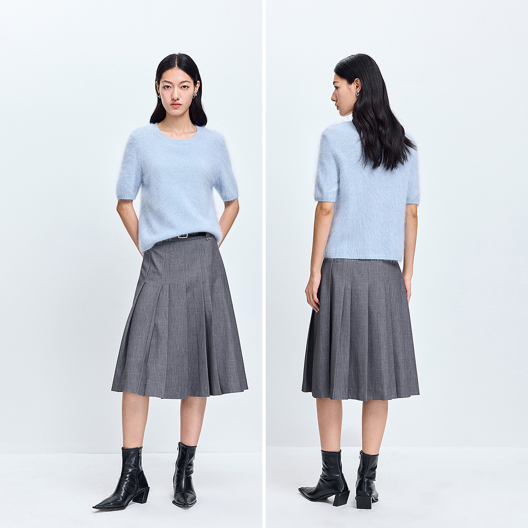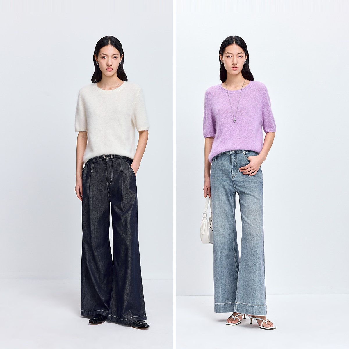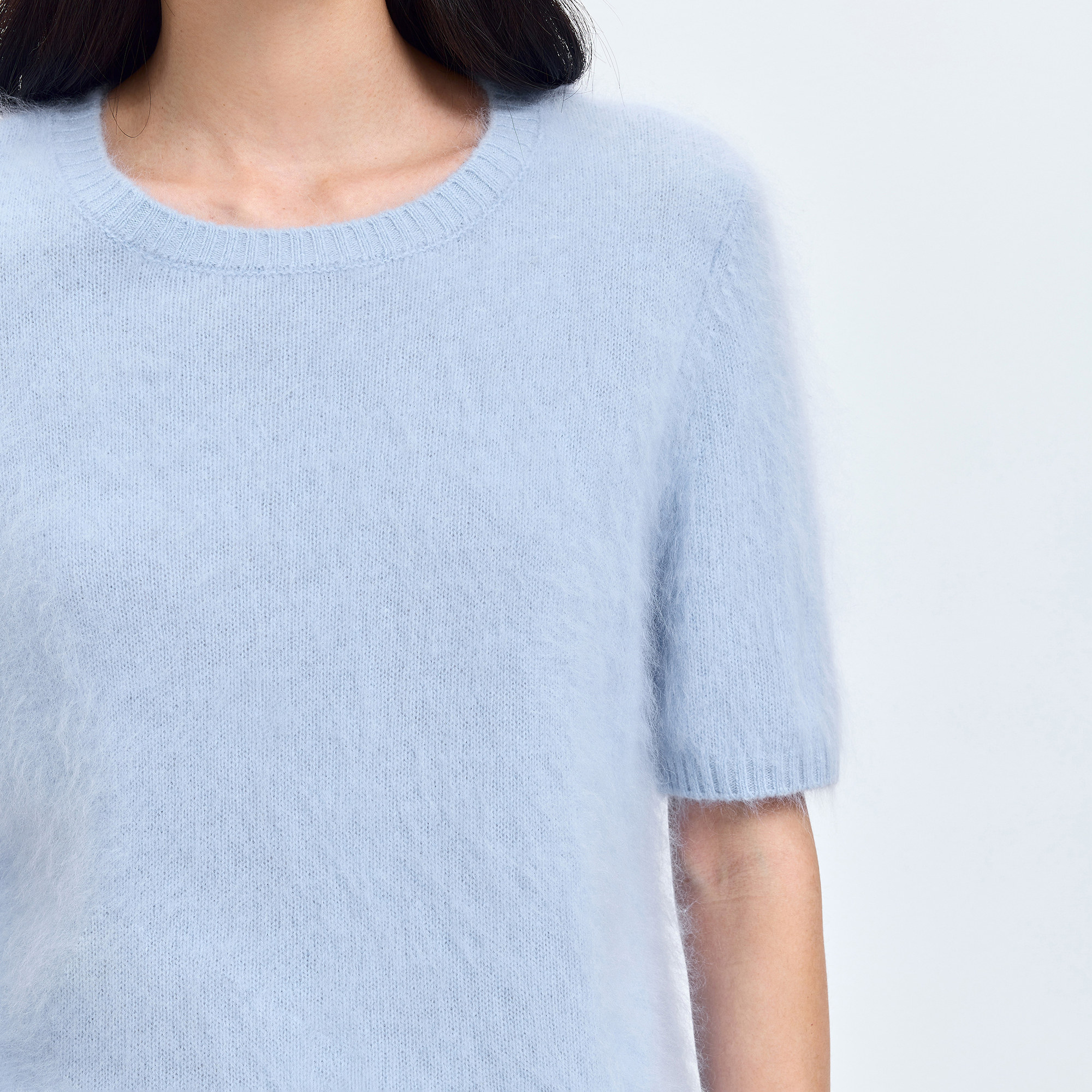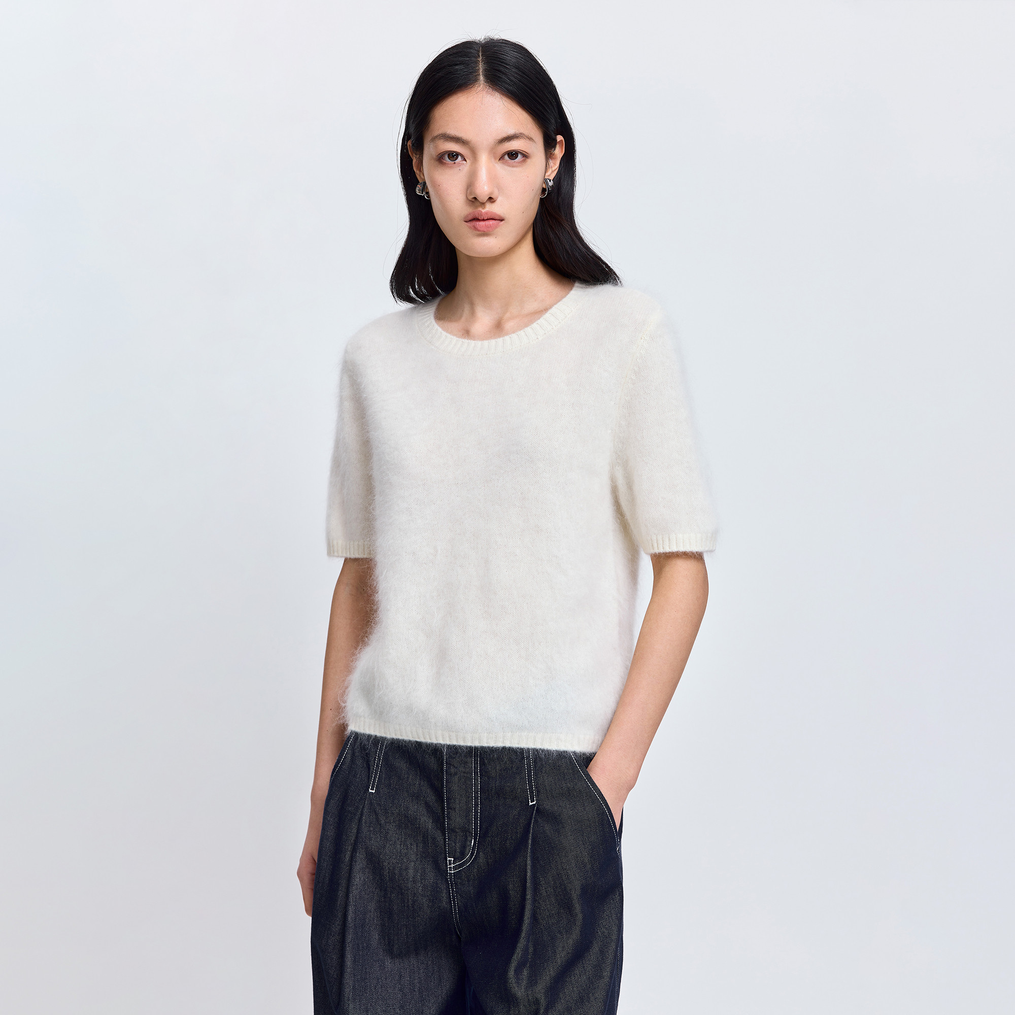 LILY2026春新款羊毛山羊绒混纺绒感圆领套头短袖针织衫毛衣女短款