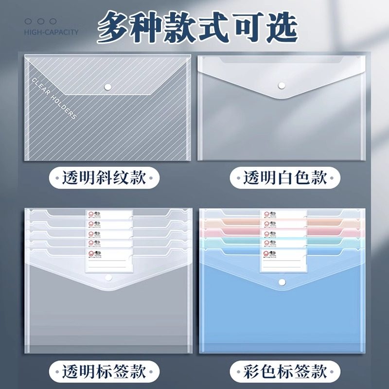 加厚A4文件袋透明塑料大容量按扣试卷收纳袋学生用档案资料袋子商务办公专用防水文件包夹小学生考试文具用品