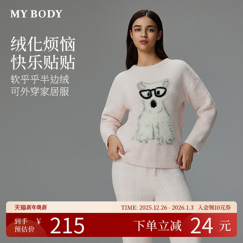 MYBODY商场同款冬季新款睡衣女款可爱动物软乎乎半边绒保暖家居服
