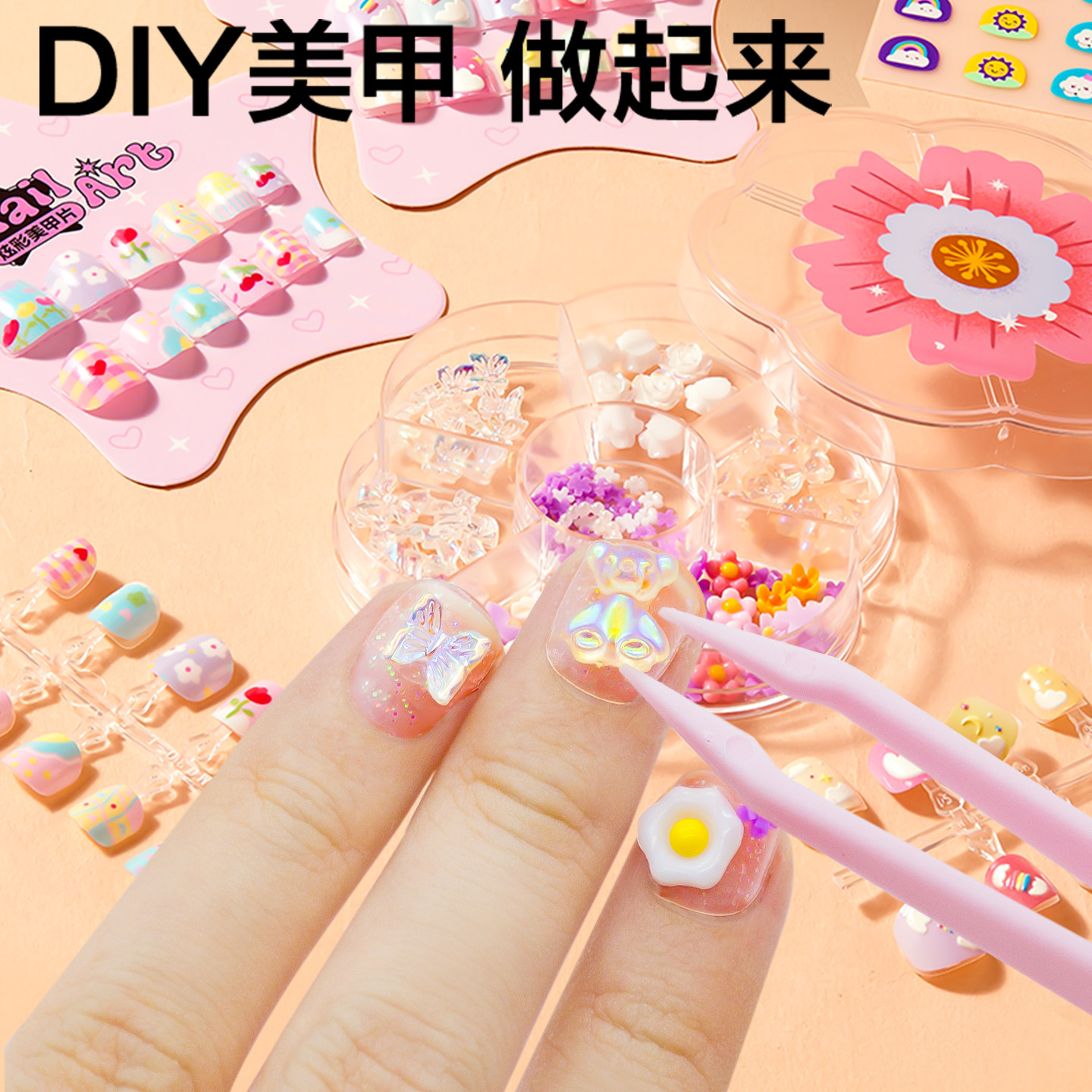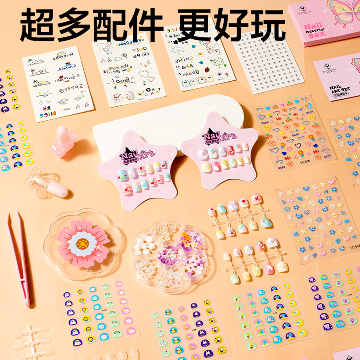 指甲贴儿童蝴蝶美甲包套装全套贴纸女孩公主换装无毒无味宝宝玩具