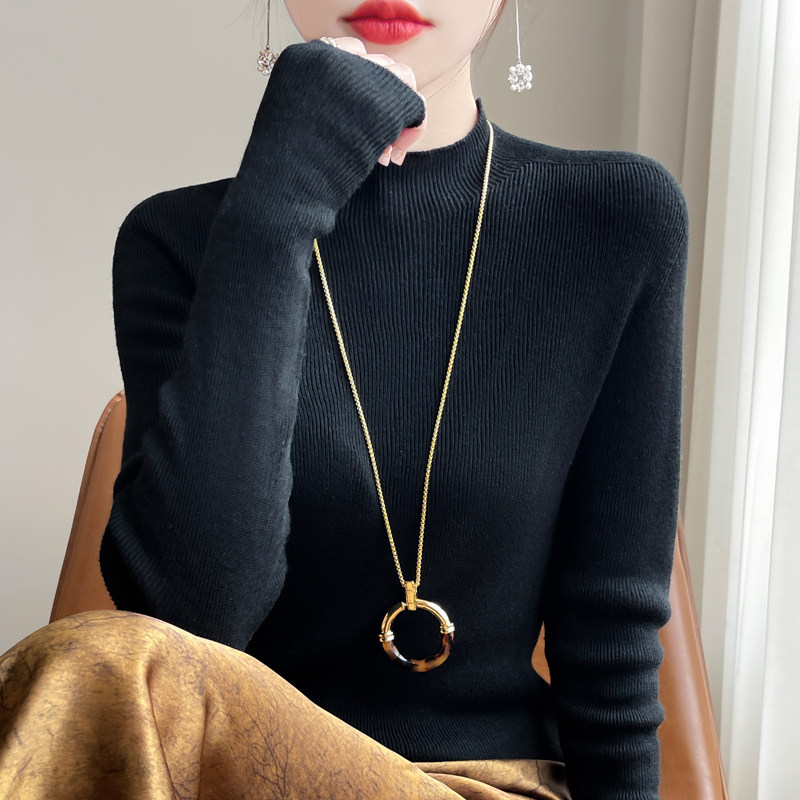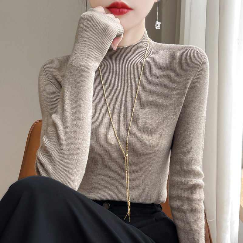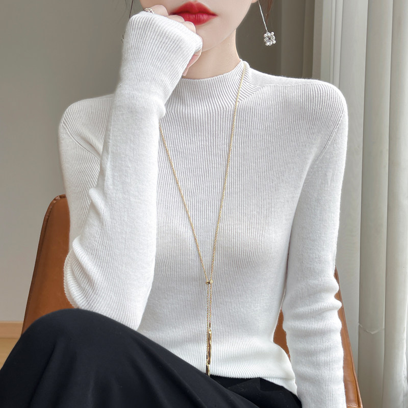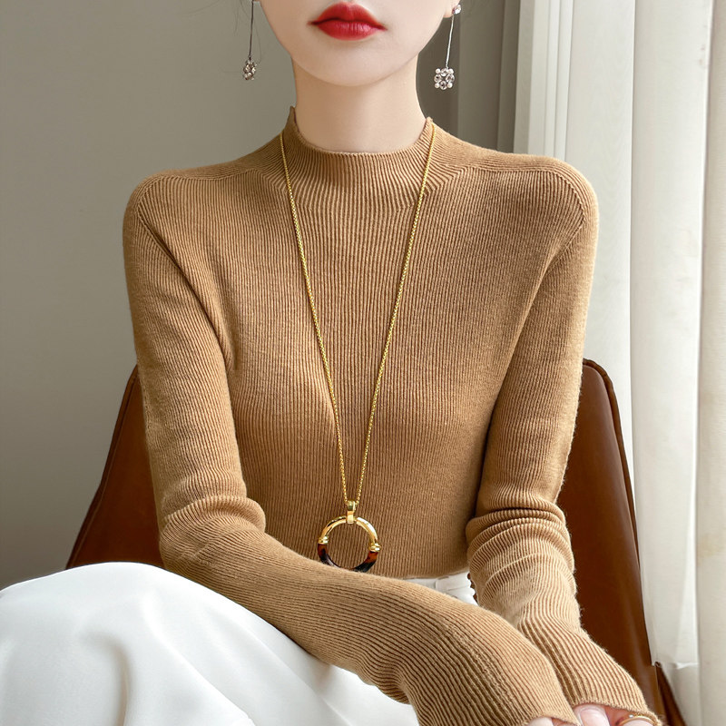 一线成衣无缝女半高领套头打底衫秋冬内搭毛衣修身长袖羊毛针织衫
