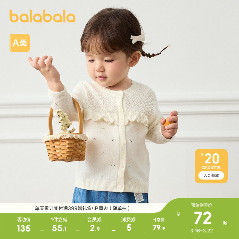 巴拉巴拉宝宝毛衣婴儿针织衫薄开衫女童春装木耳边拼接甜美气质潮