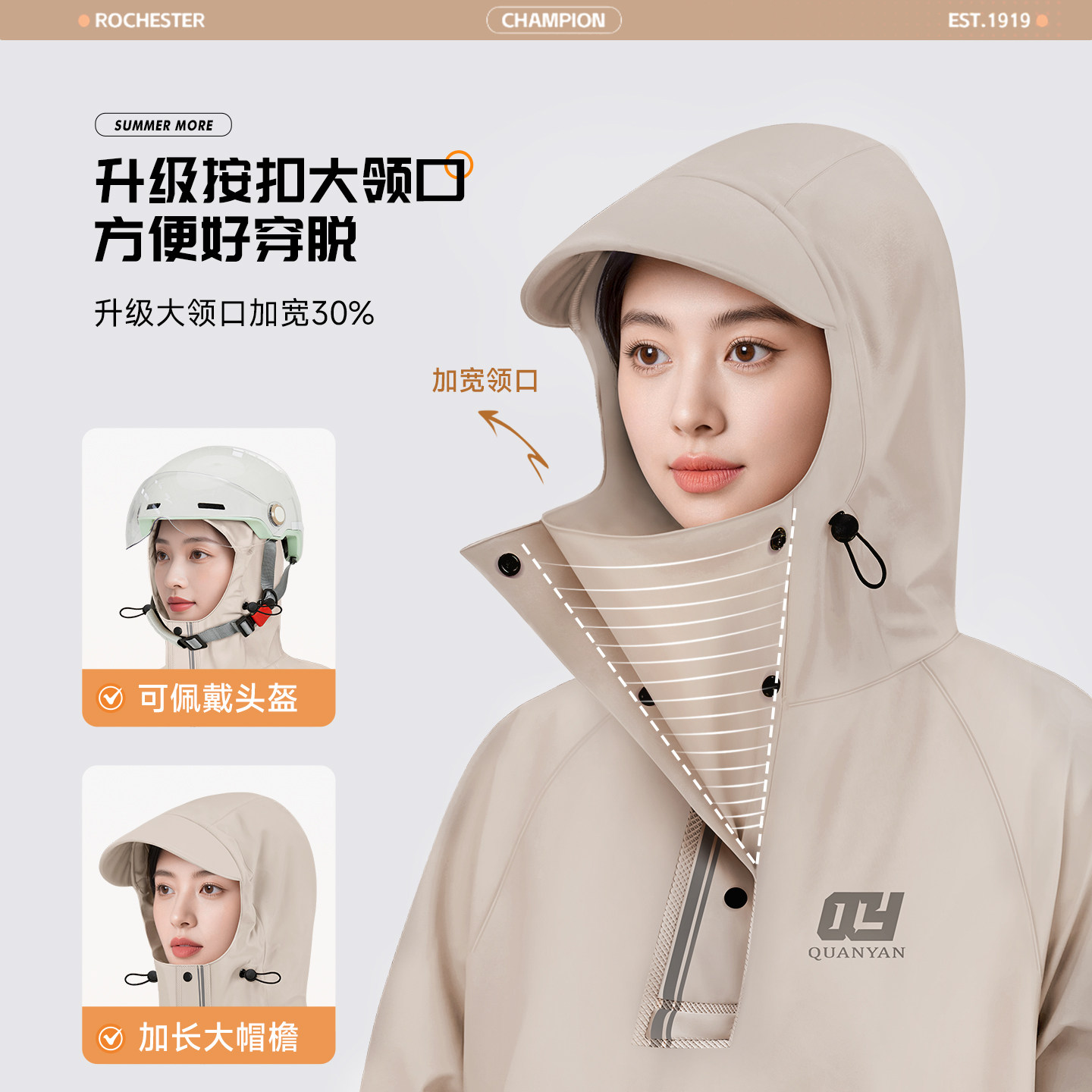 高领防渗水、穿脱更方便、防水大口袋