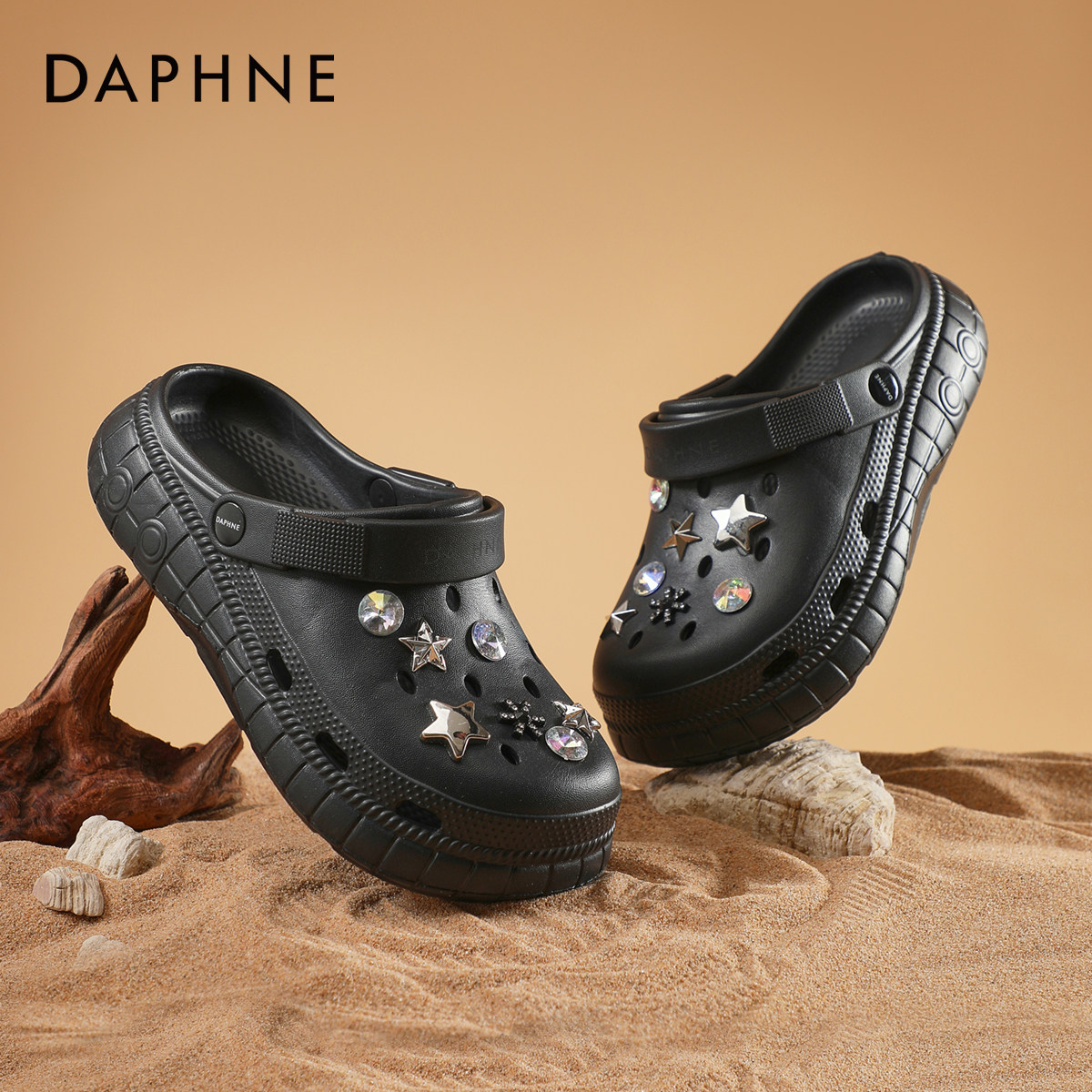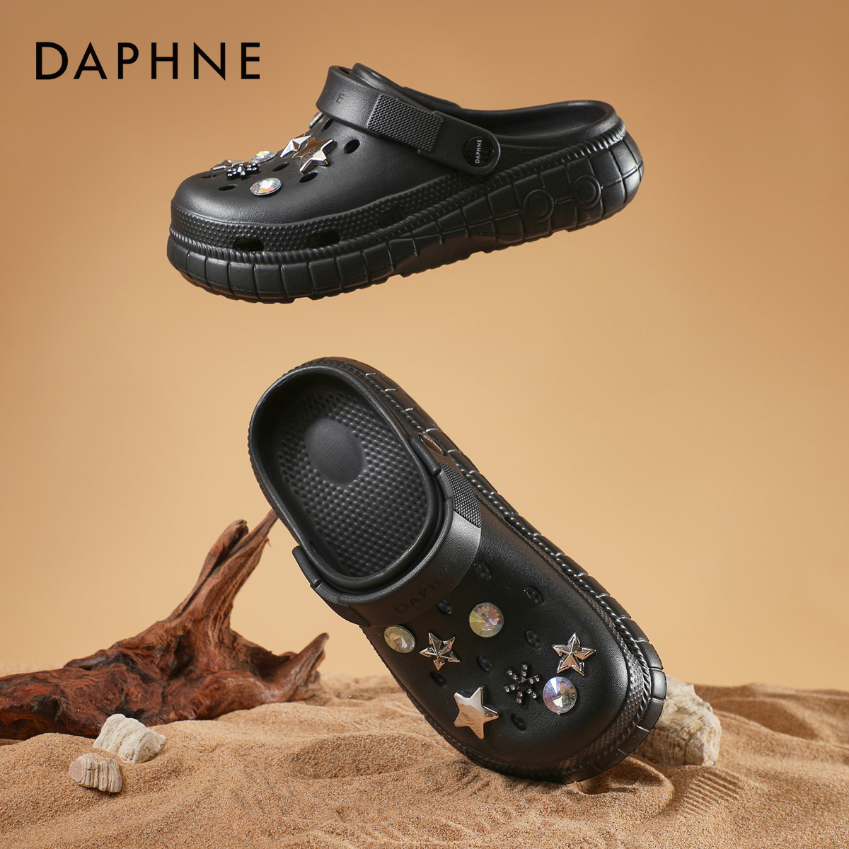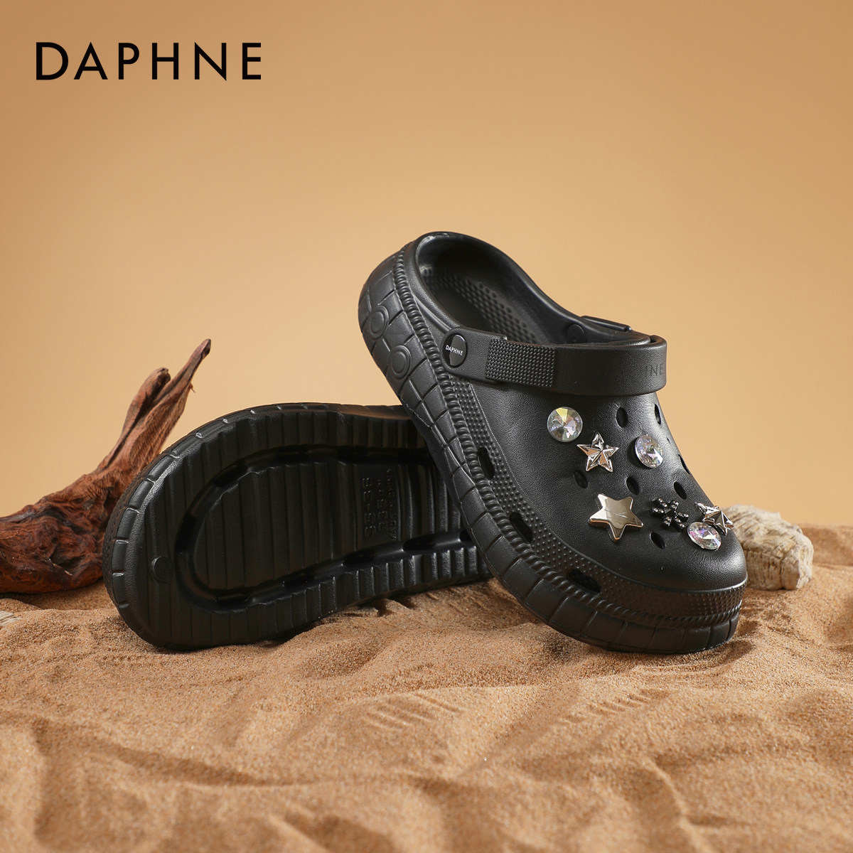 达芙妮星星洞洞鞋女款2026新款夏季软底水钻沙滩鞋外穿踩屎感拖鞋