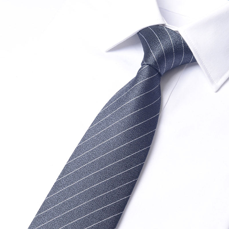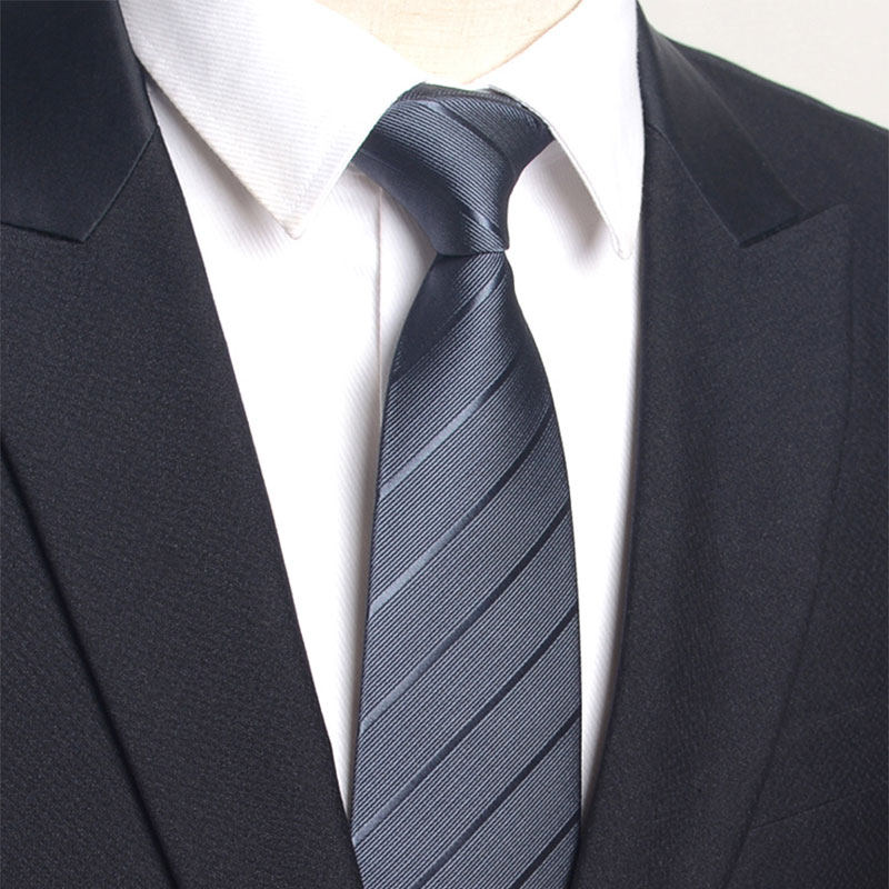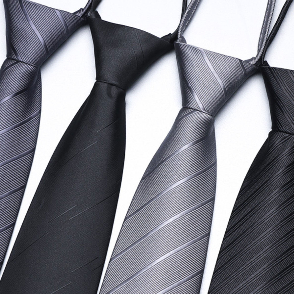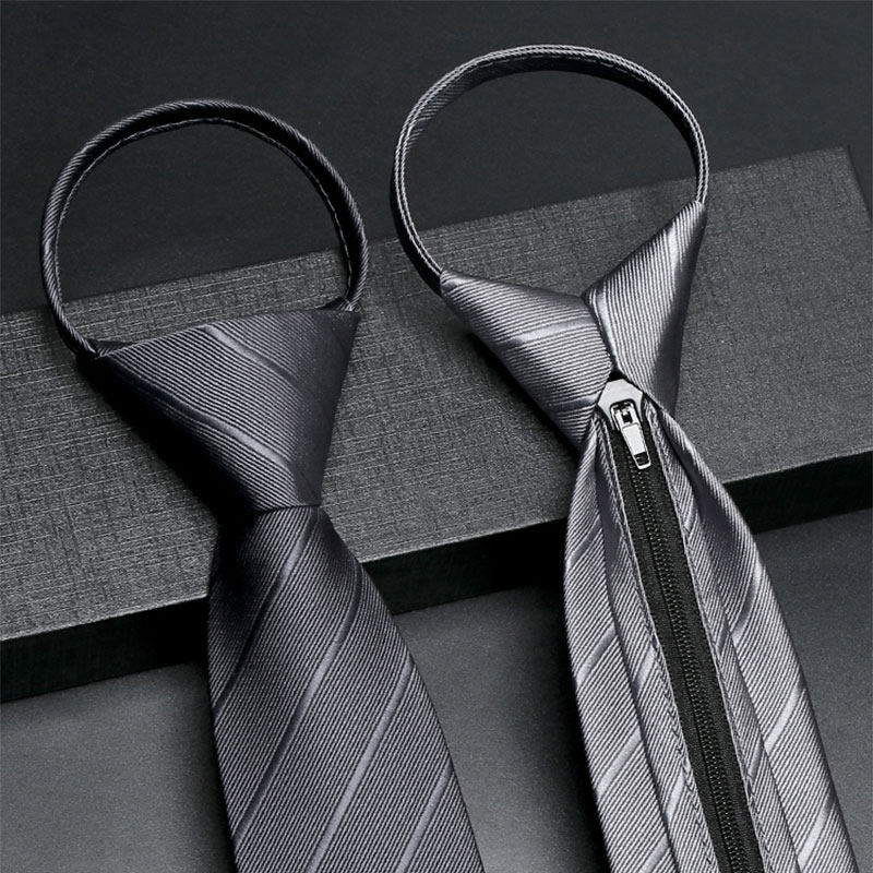 相思鱼8cm拉链免打领带男士商务正装结婚新郎手打深灰色婚礼条纹