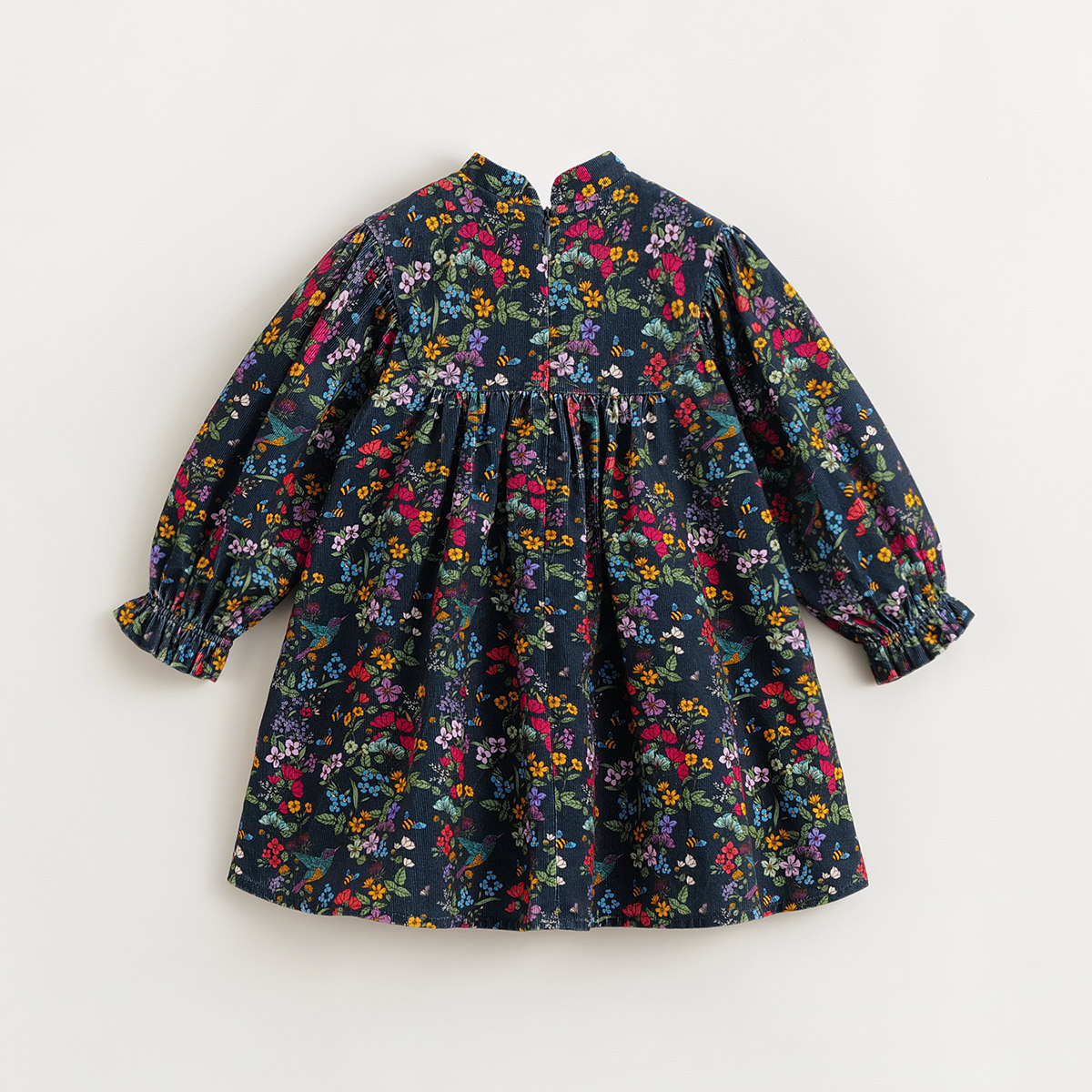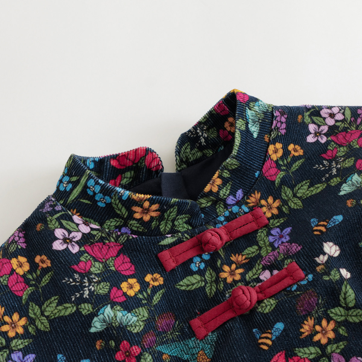 纯棉灯芯绒面料,中国风蜂鸟印花,手工盘扣