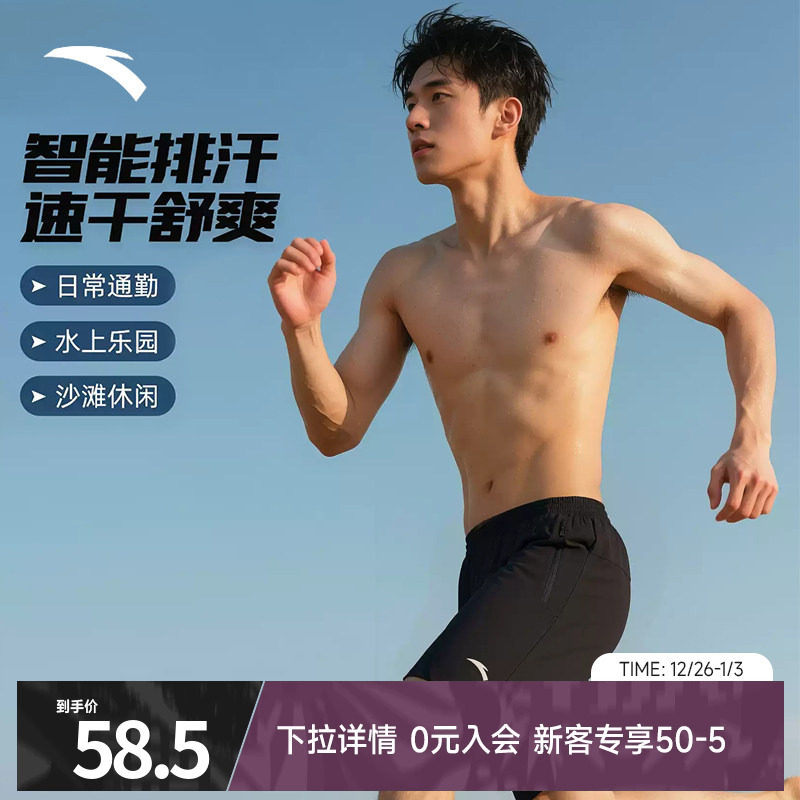 安踏短裤泳裤男沙滩裤透气速干防尴尬外穿宽松温泉度假五分裤子男