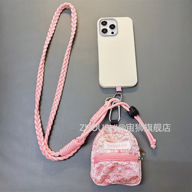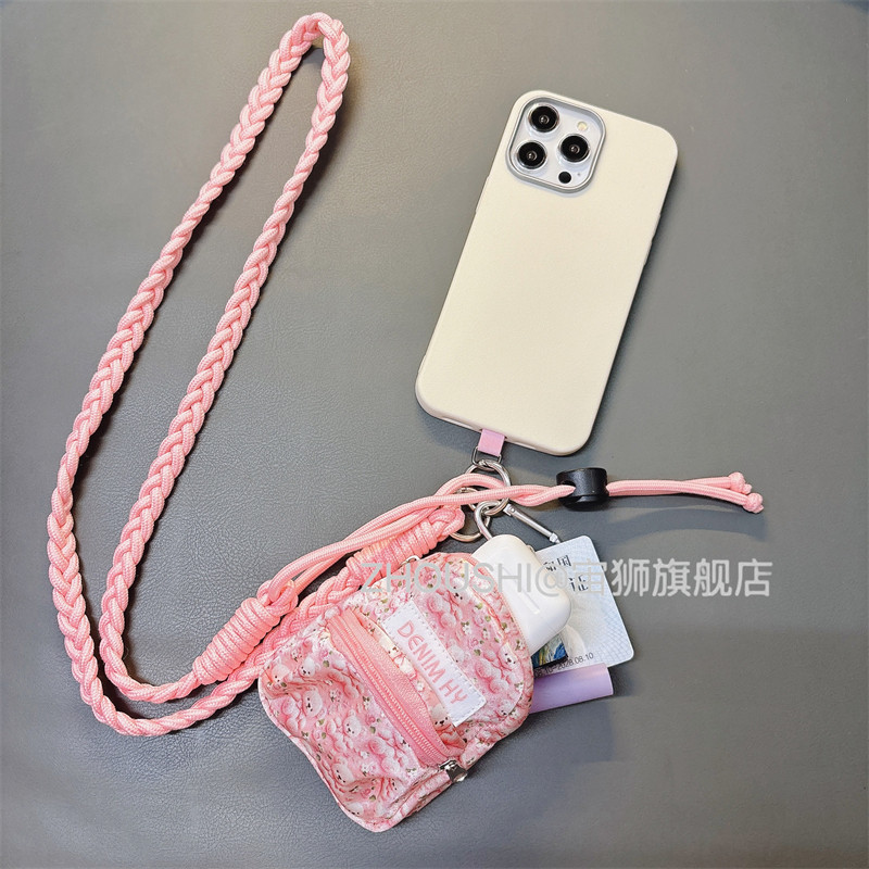 小香风活力配色适用通用手机壳挂绳可调节斜跨便携收纳包多功能防盗防丢挂链女士方便小众手工编织绳时尚简约