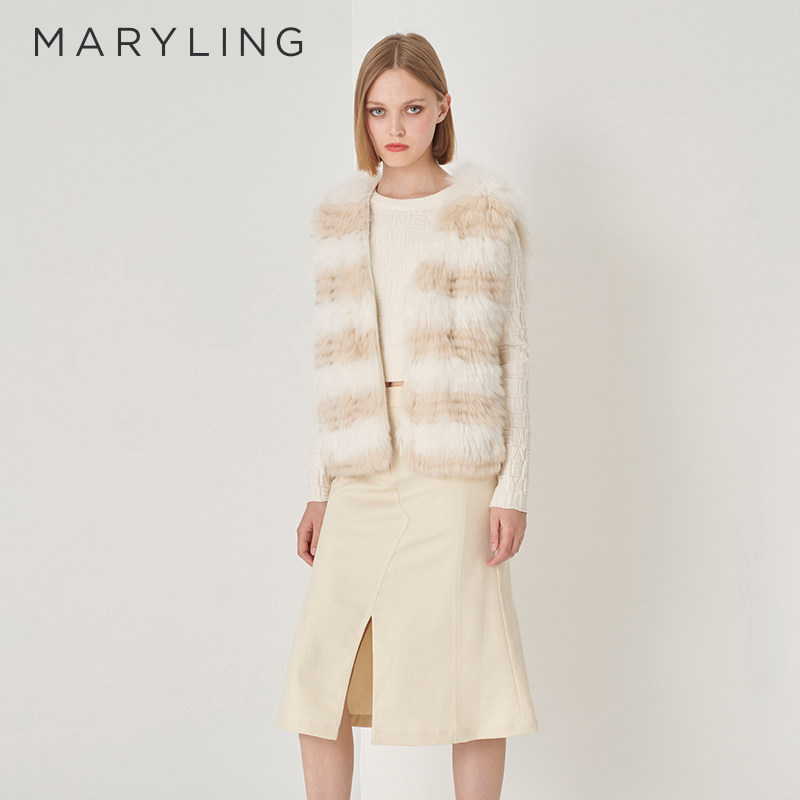 MARYLING玛俪琳秋季新品白色狐狸毛皮草马甲A1DGW9F050