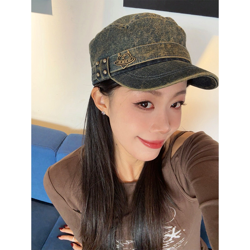 妖精的口袋复古牛仔水洗平顶帽女2026年新款显脸小文艺百搭鸭舌帽