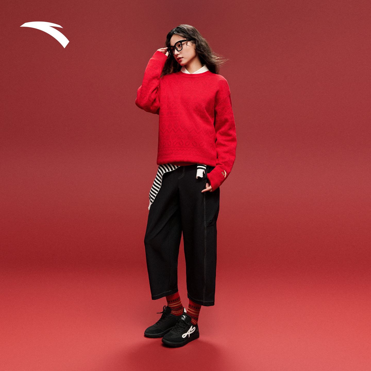 安踏好事发生丨休闲长袖编织衫男女新年款宽松针织毛衣152618708
