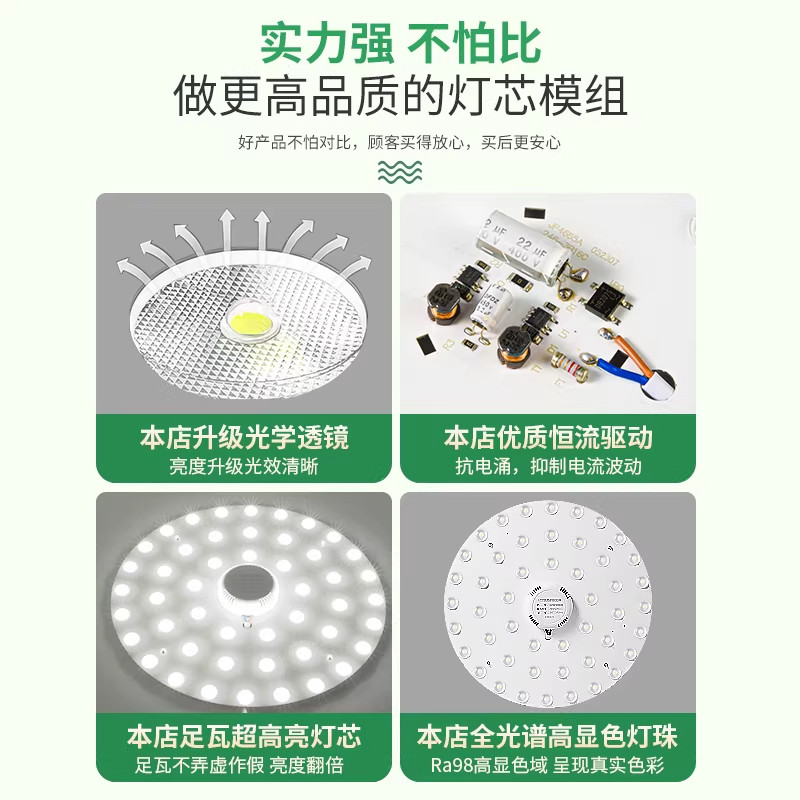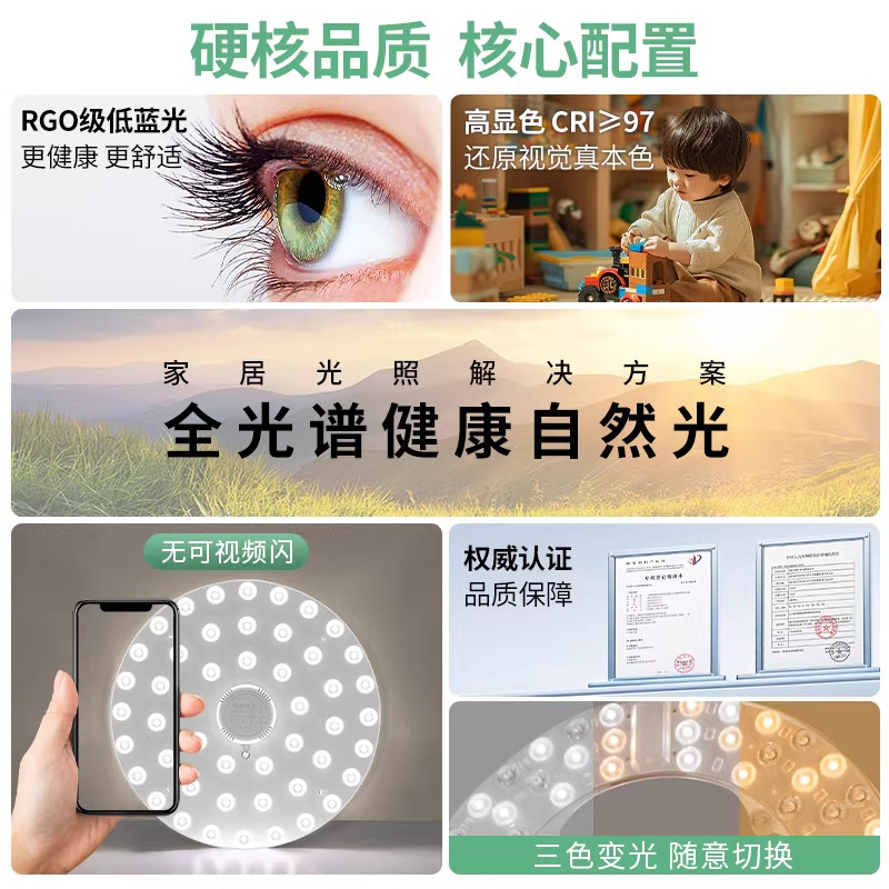 全光谱吸顶灯led灯芯替换芯磁吸灯盘护眼三色灯珠客厅灯条节能灯