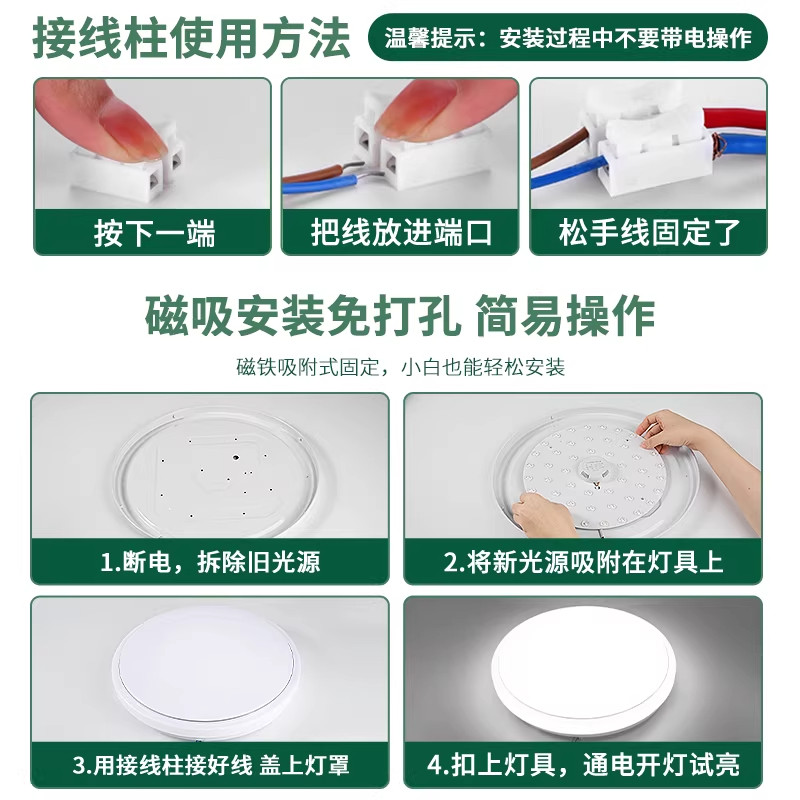 【全网】LED磁吸替换灯芯灯盘三色白光超亮改造模组安装简单