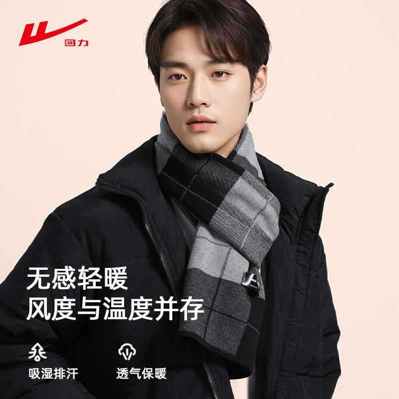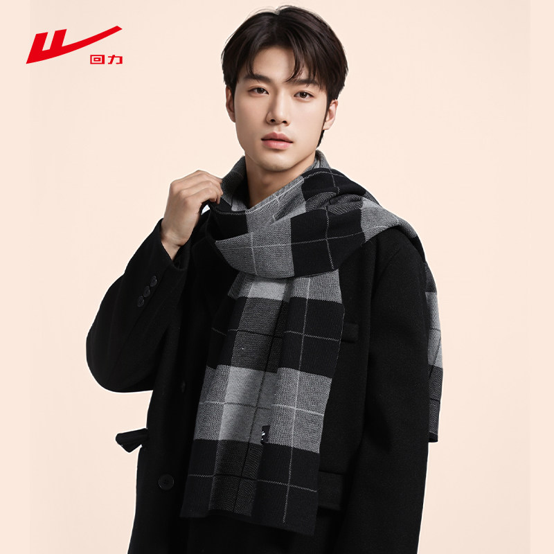 回力围巾冬季2025新款百搭披肩格子加大加厚保暖围脖情侣红色灰色