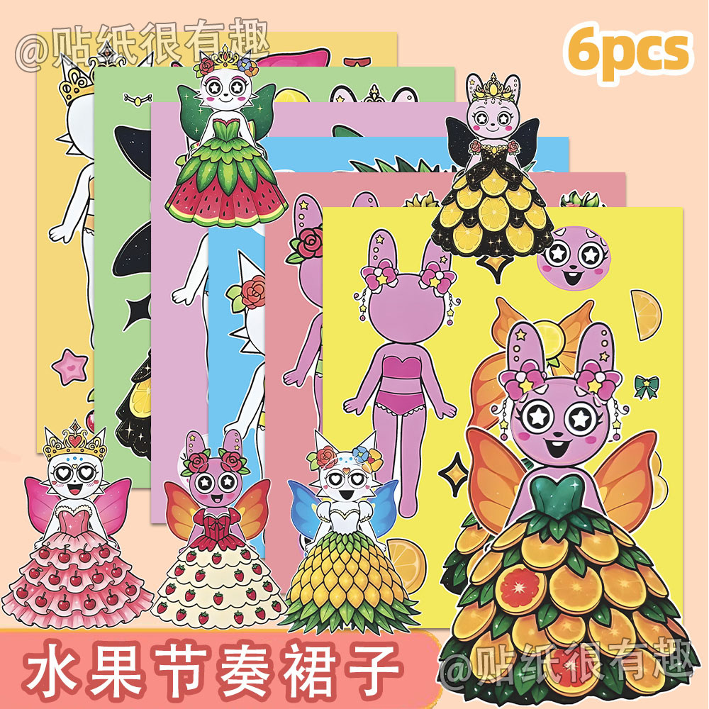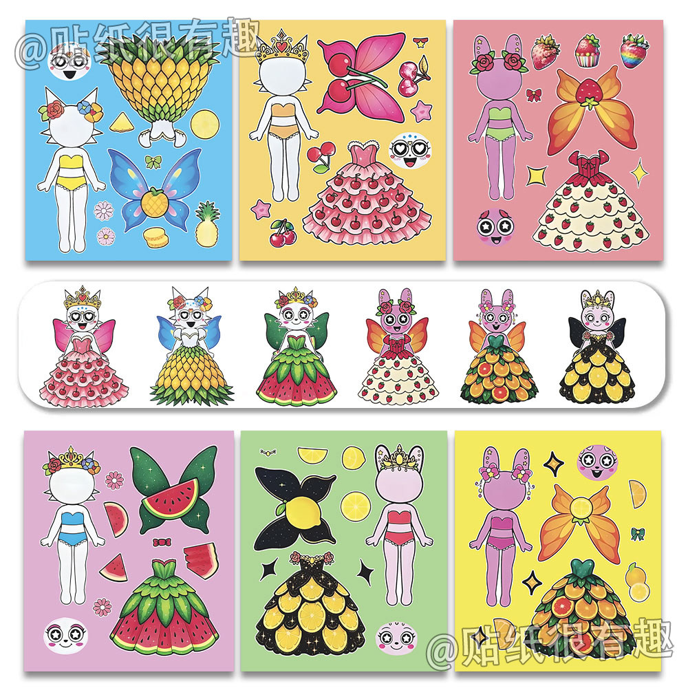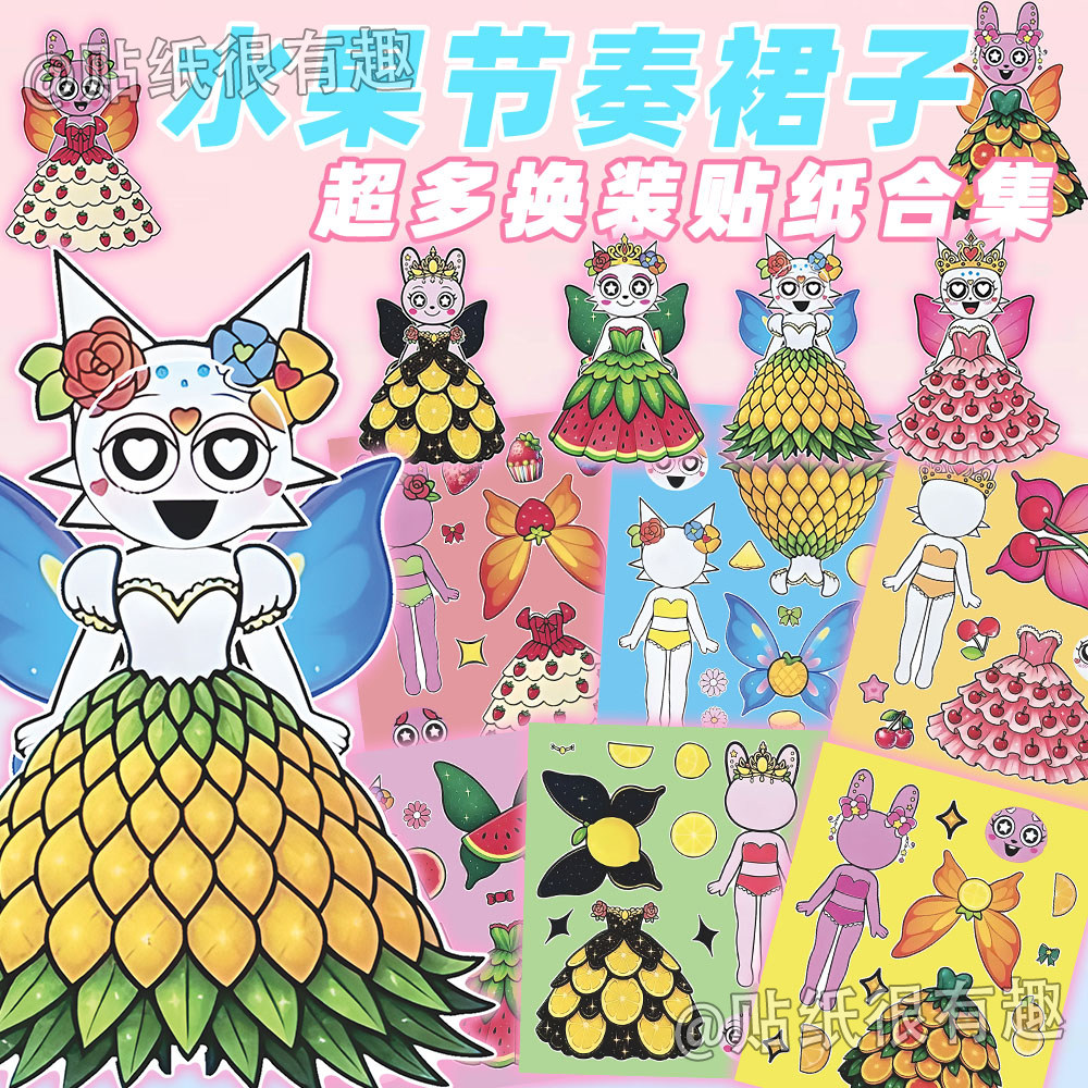 新款】节奏盒子水果元素公主裙精美换装贴纸儿童益智手工diy贴画