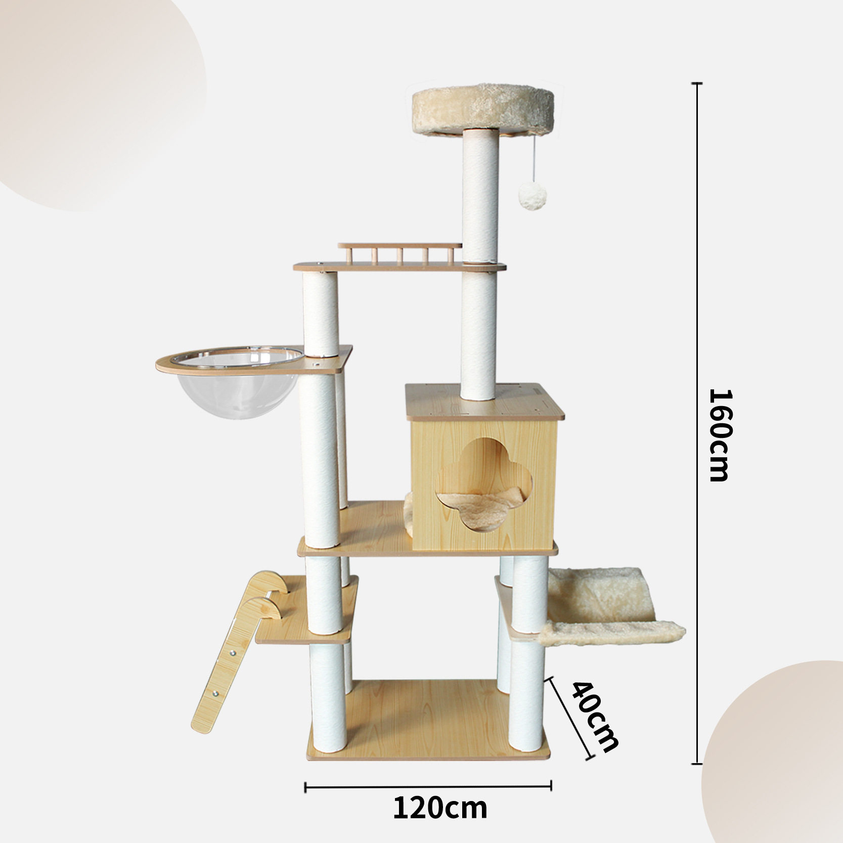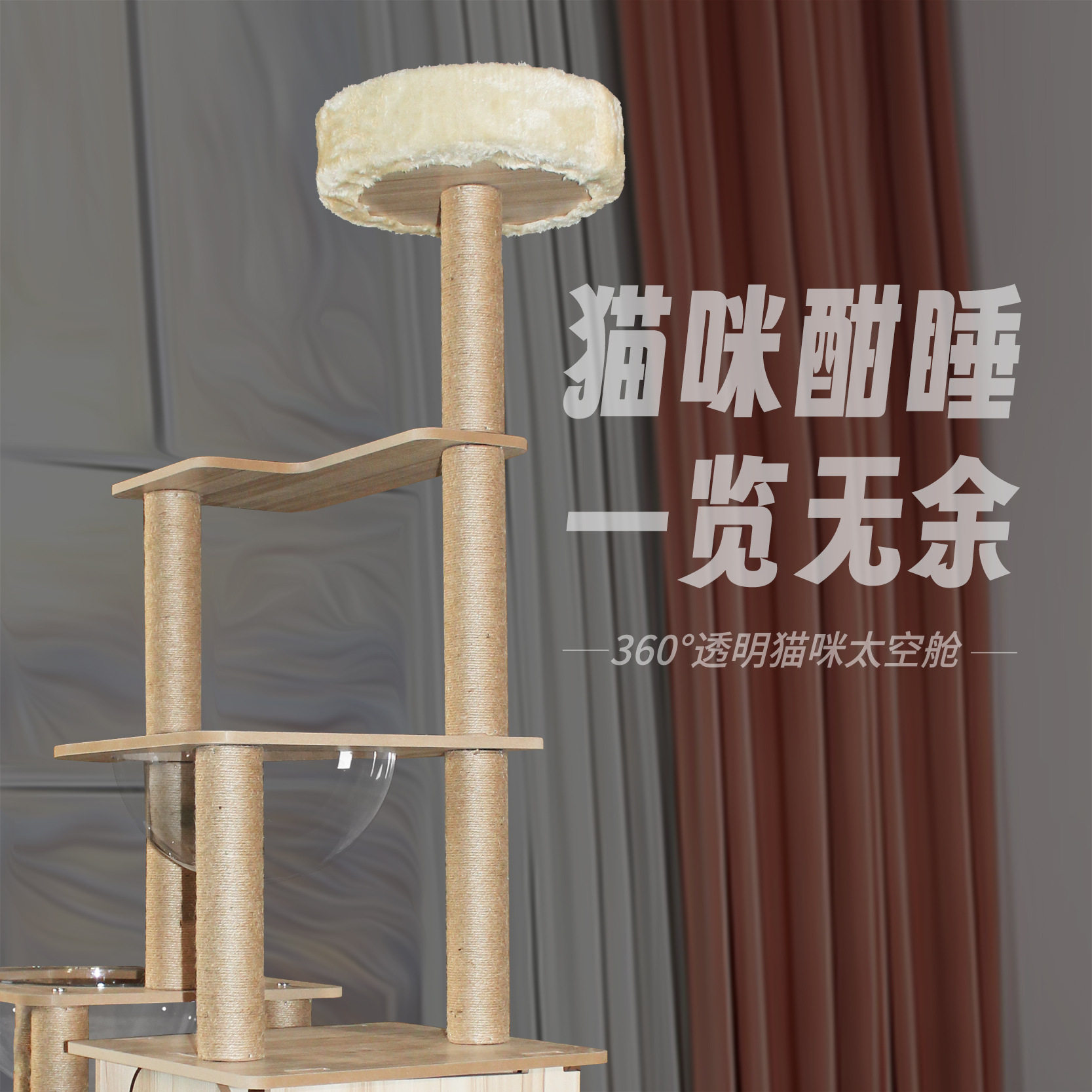 实木大型一体高跳台登高六层猫爬架不掉屑多功能结绳圆筒猫窝套装