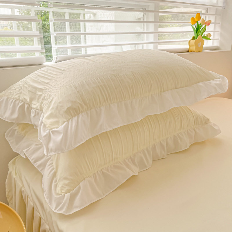 韩版公主风花边款纯棉床裙三件套ins裸睡纯色全棉床罩防滑A类床单