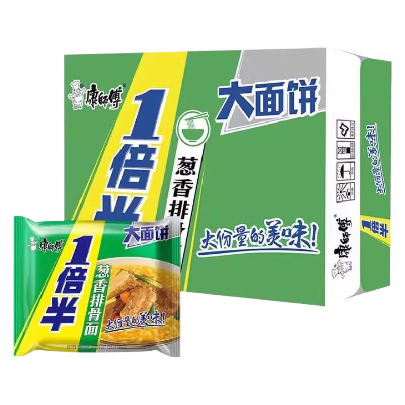 康师傅一倍半红烧牛肉面方便面袋装大份量袋整箱速食香辣藤椒酸辣