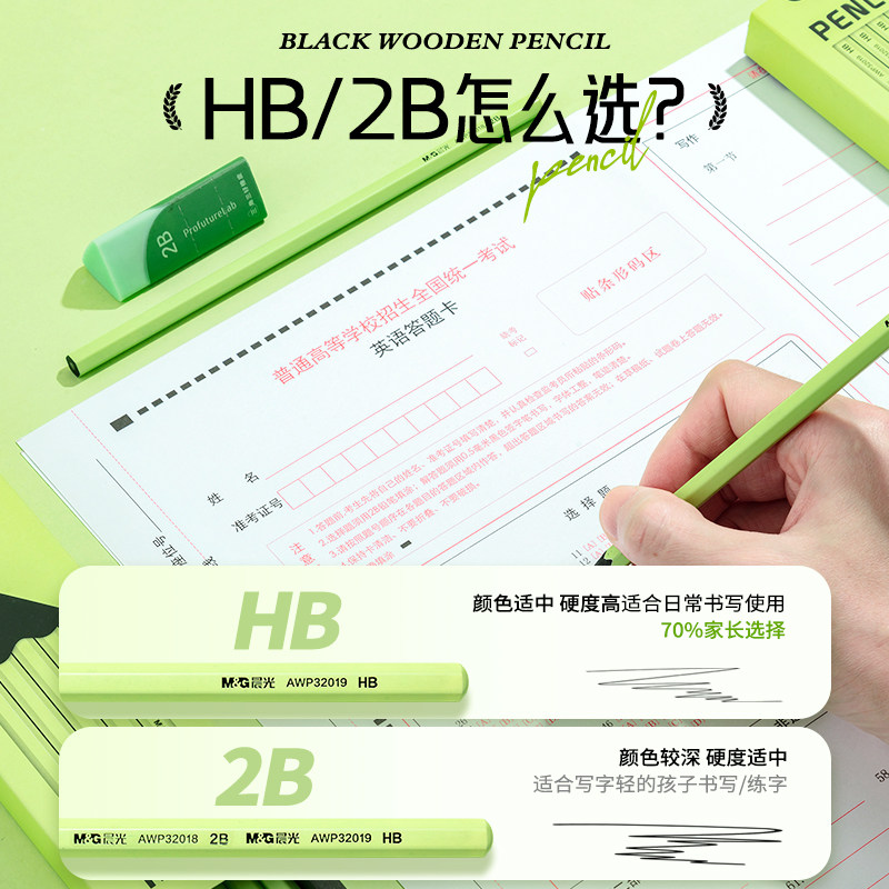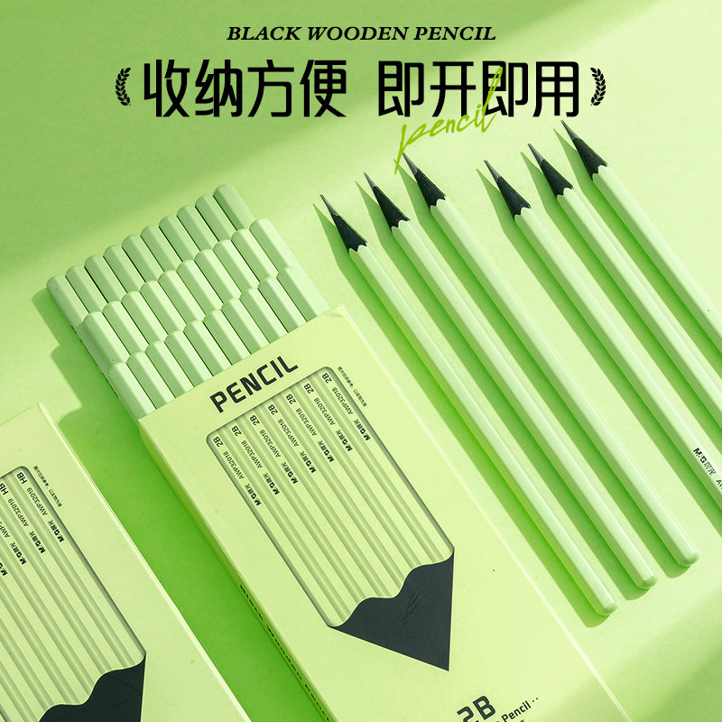 晨光文具高颜值小绿杆黑木铅笔无铅毒小学生专用hb铅笔一年级安全无毒幼儿园2B铅笔儿童练字笔考试套装护眼笔