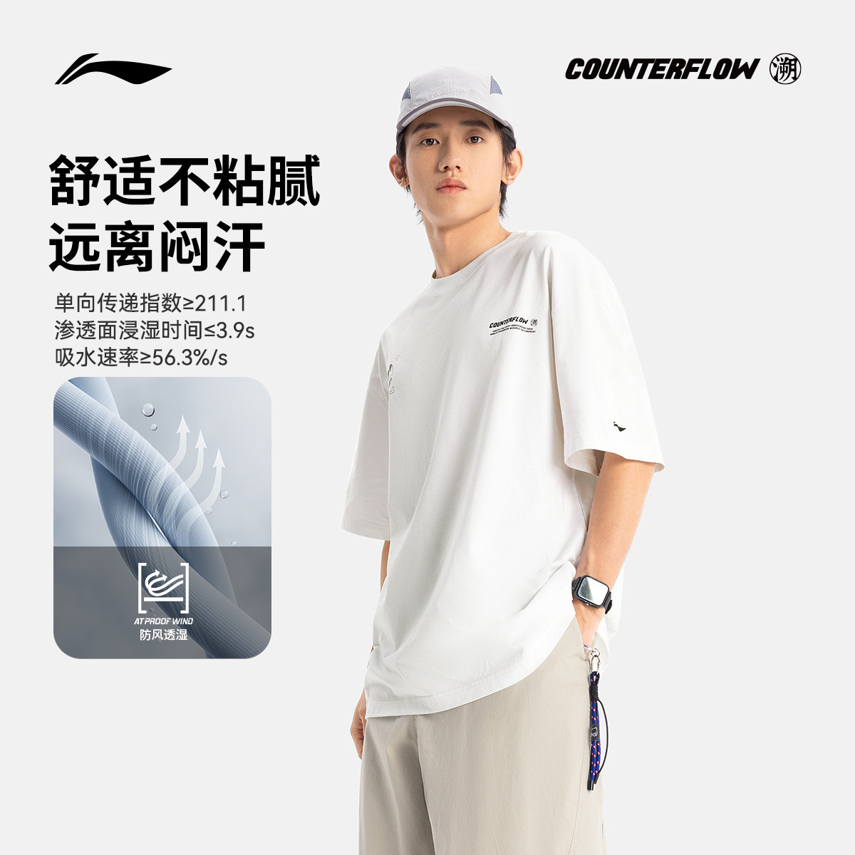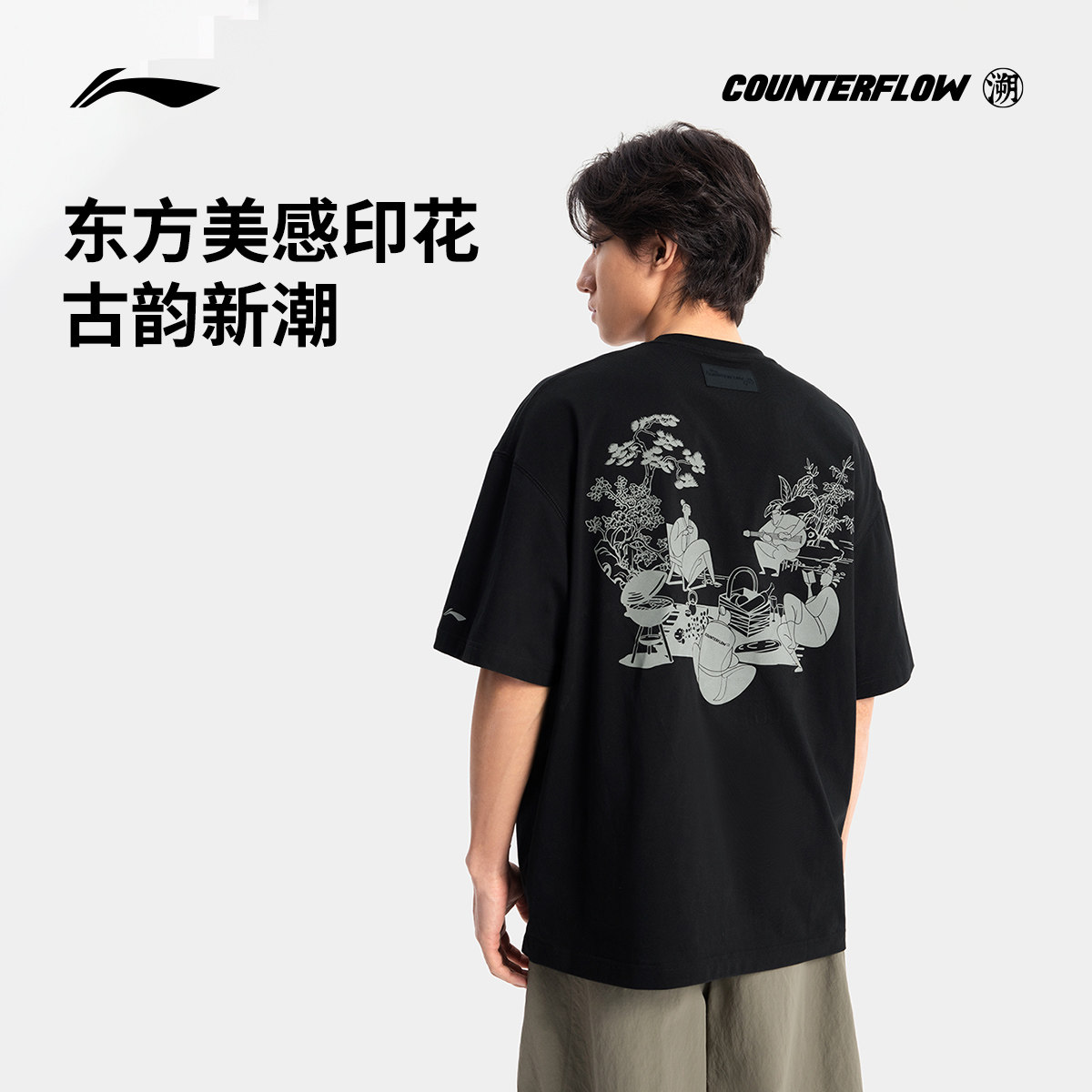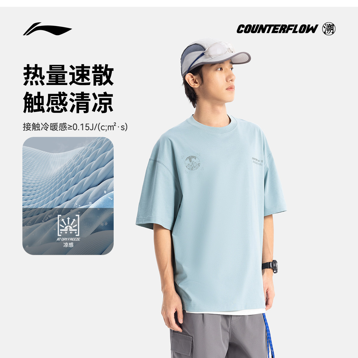 李宁户外CF溯丨短袖T恤凉感圆领夏季款透气黑色宽松运动上衣男款