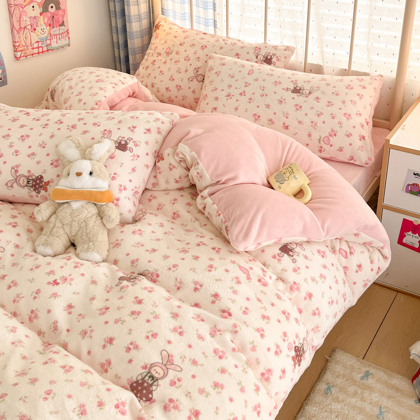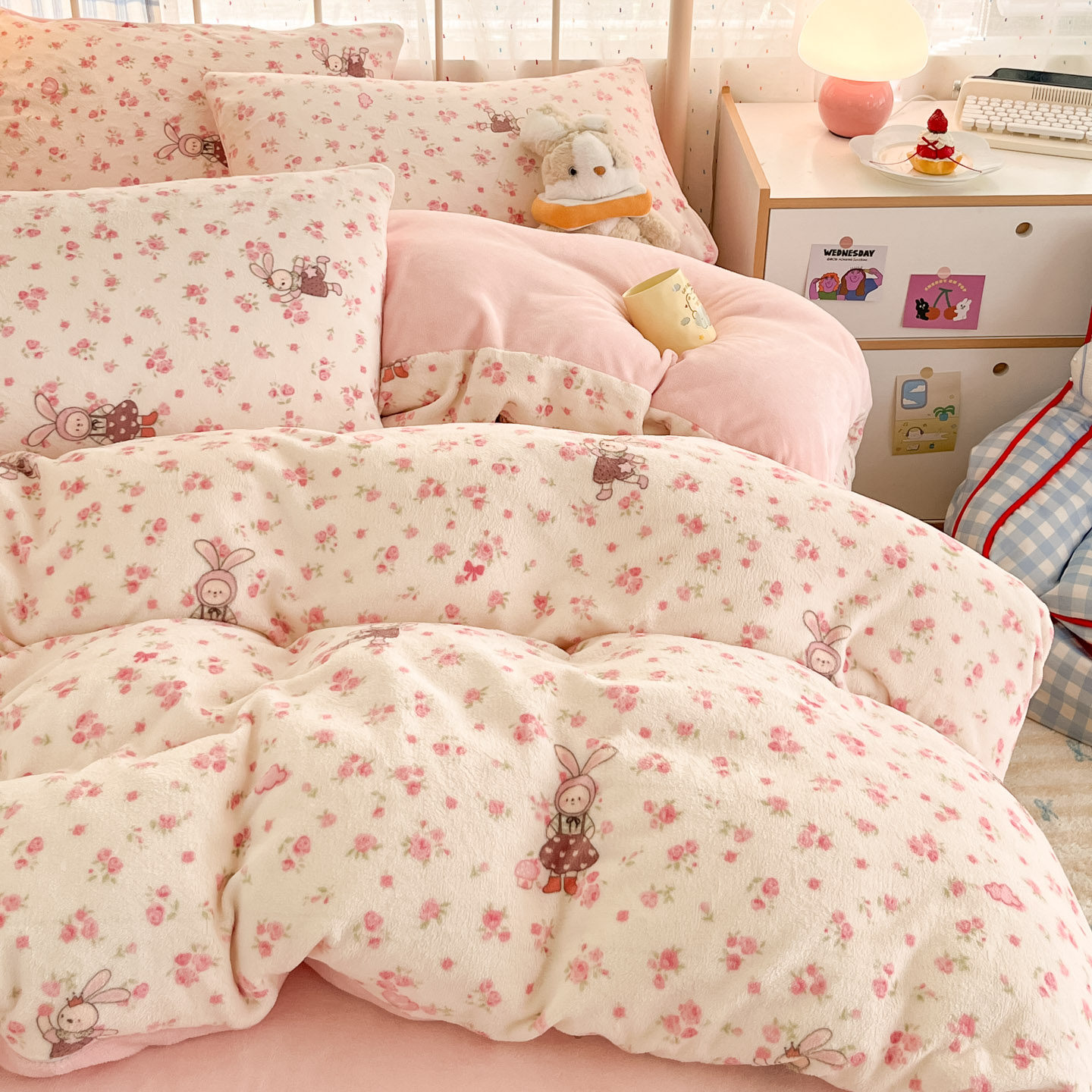 秋冬季加厚四件套牛奶绒被套床单双面加绒被罩床笠学生宿舍三件套