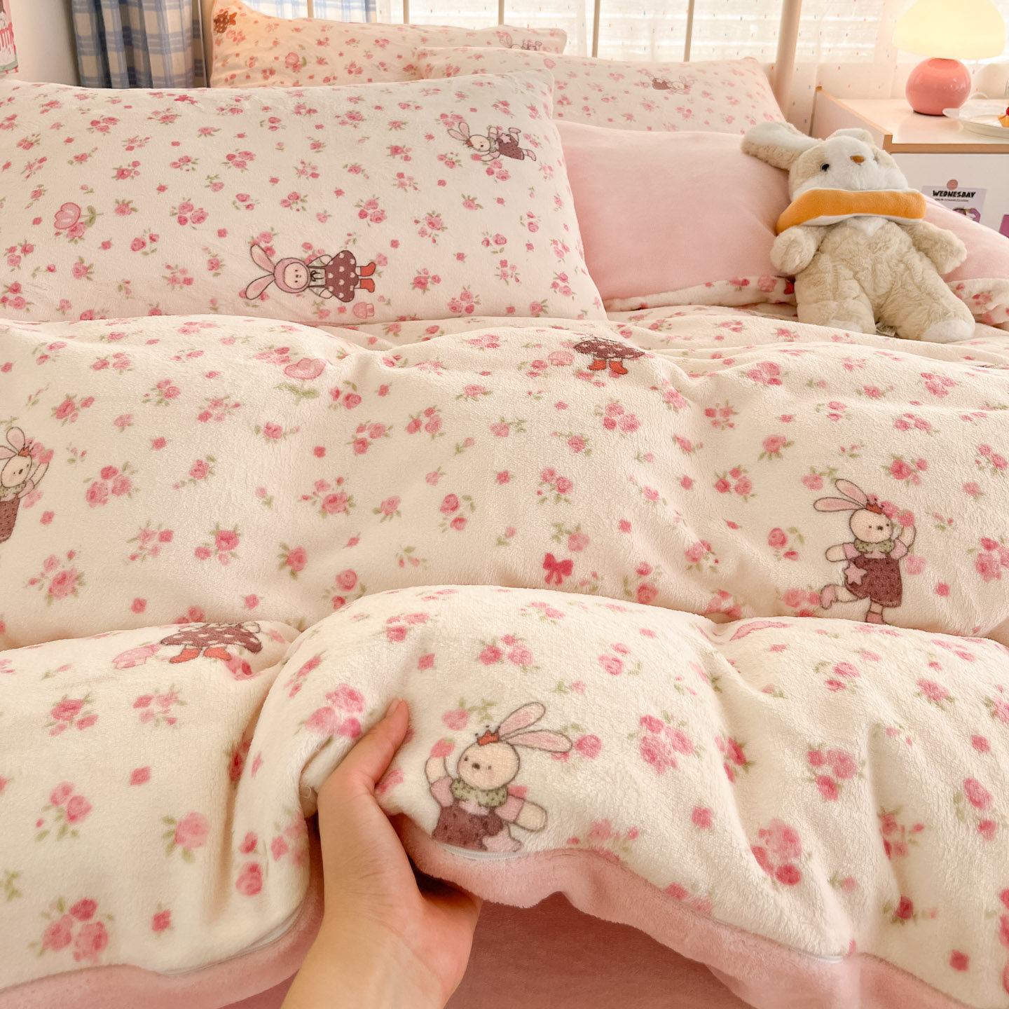 洁丽雅牛奶绒四件套冬季珊瑚绒被套床单加绒毛绒法兰绒床上三件套