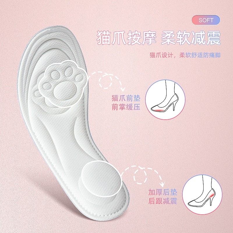 鞋垫女吸汗防臭运动减震4d软久站超软防痛不累男士皮鞋踩屎感军训