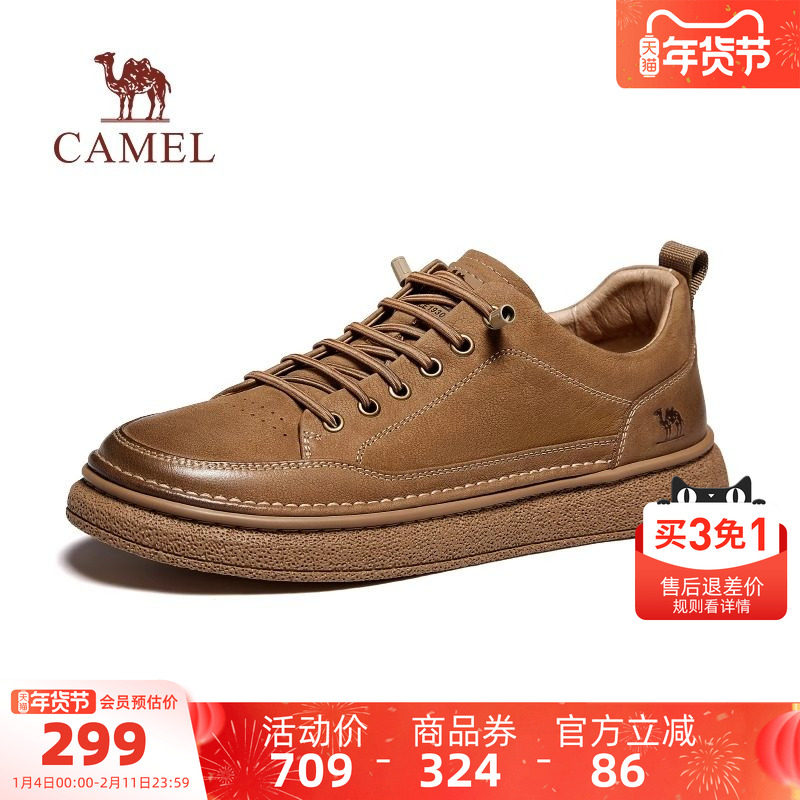 骆驼男鞋2025秋季新款复古板鞋舒适潮流鞋子男免系百搭英伦休闲鞋