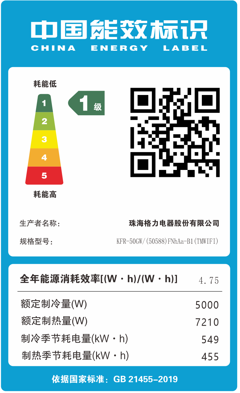 格力优远1级挂机KFR-50GW/(50588)FNhAa-B1(TMWIFI)