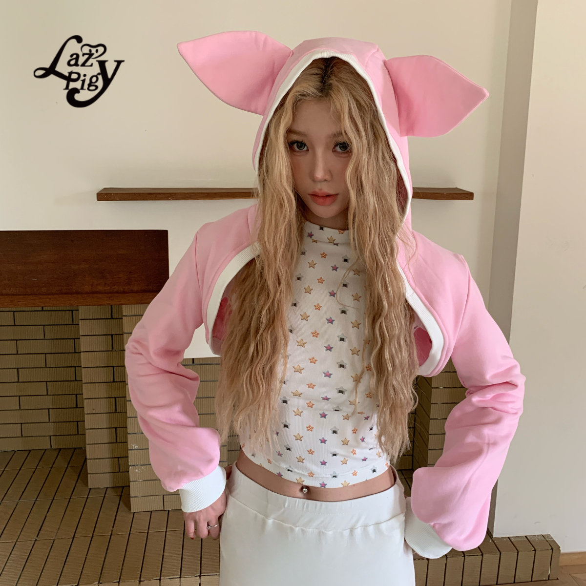 ALazyPig星星印花修身长袖T恤女25秋季新品甜辣少女弹力打底上衣