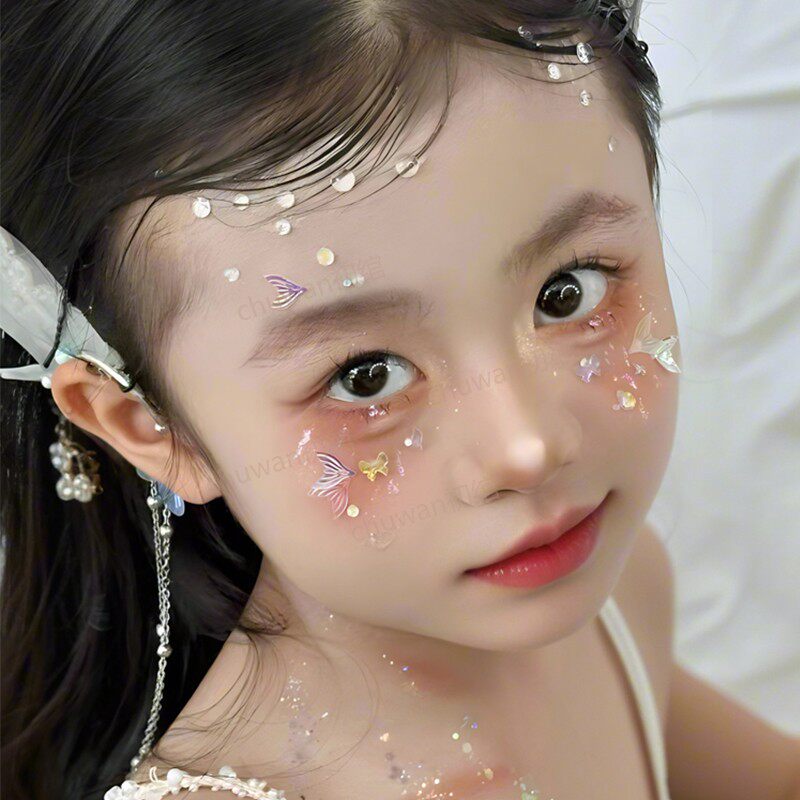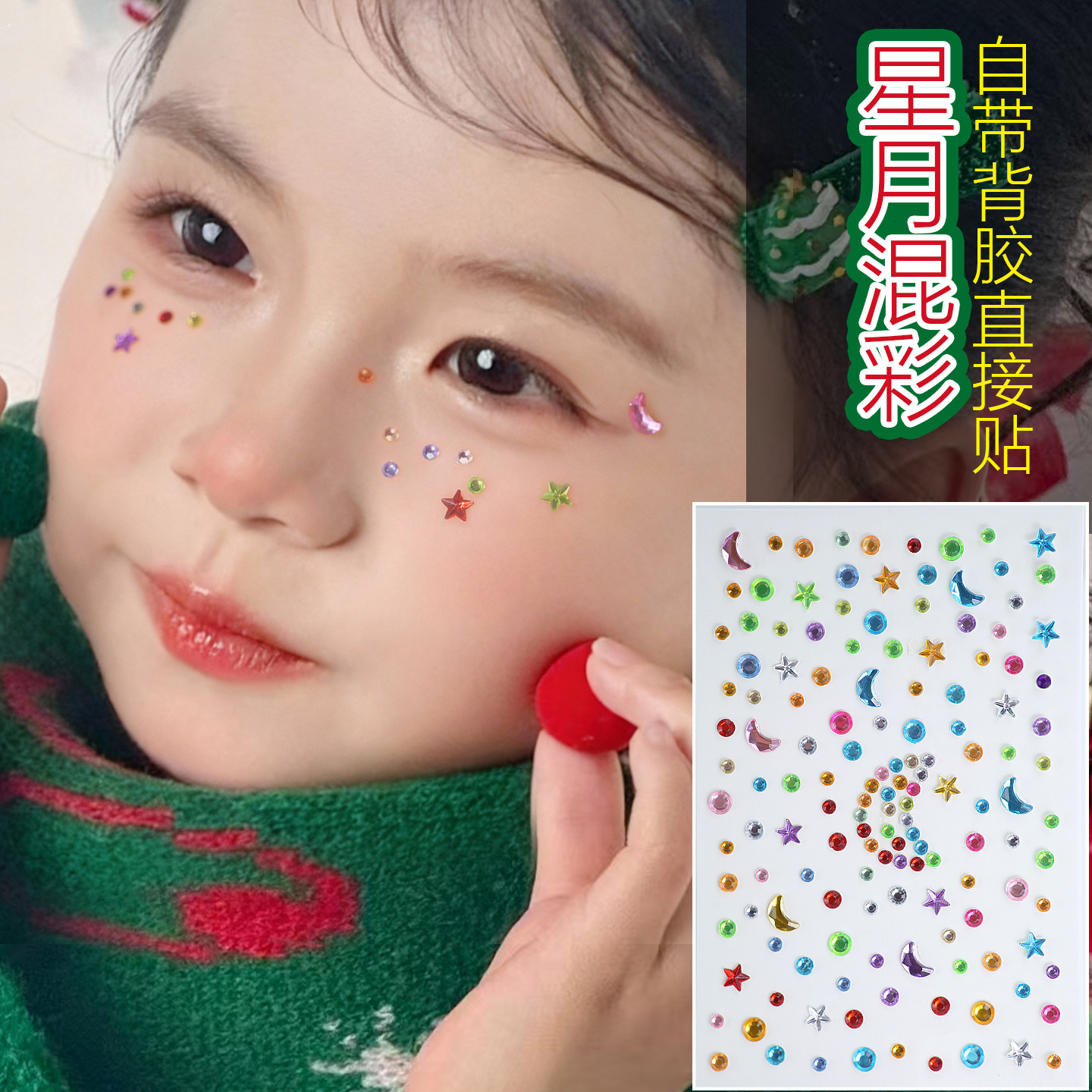 六一儿童舞台表演贴脸饰品珍珠水钻蝴蝶小花脸上贴装饰自粘免胶水