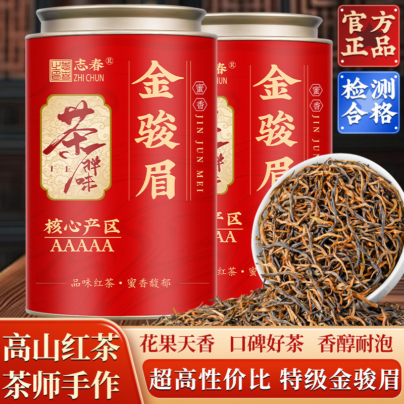 志春 正宗武夷金骏眉红茶蜜香黄芽浓香型新茶养胃茶叶罐装250g