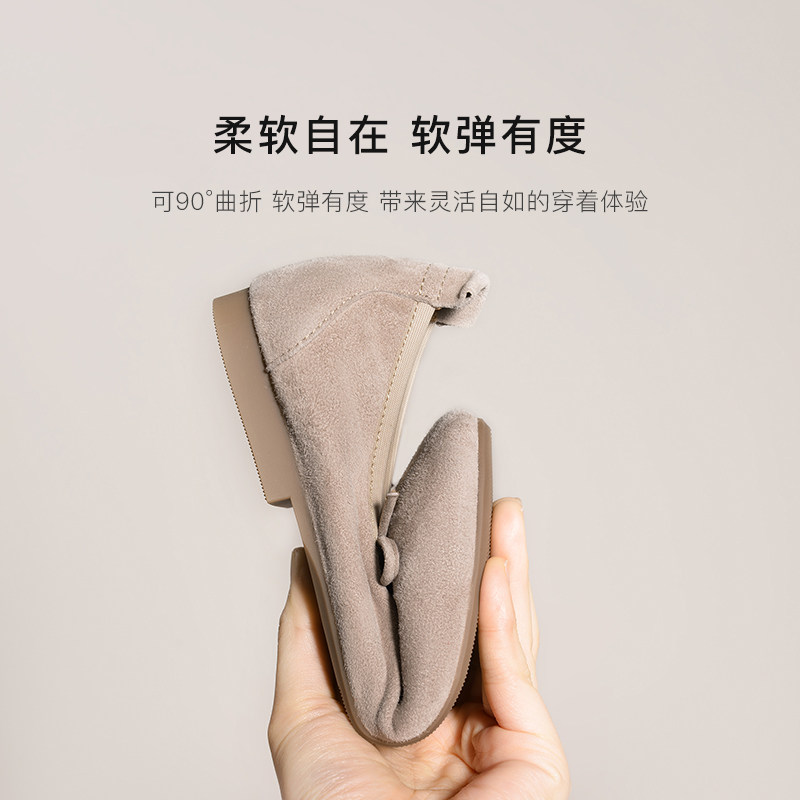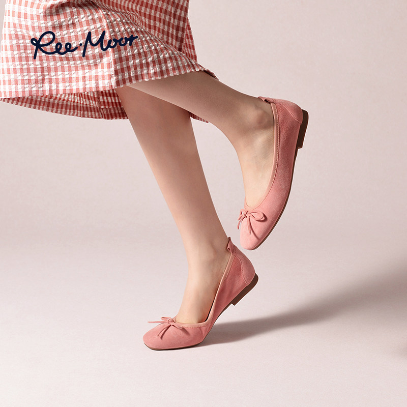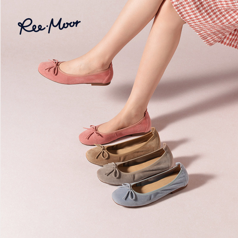 REEMOOR睿慕2025秋季新款舒适蛋卷鞋绒面浅口单鞋平底鞋通勤女鞋
