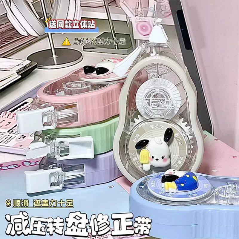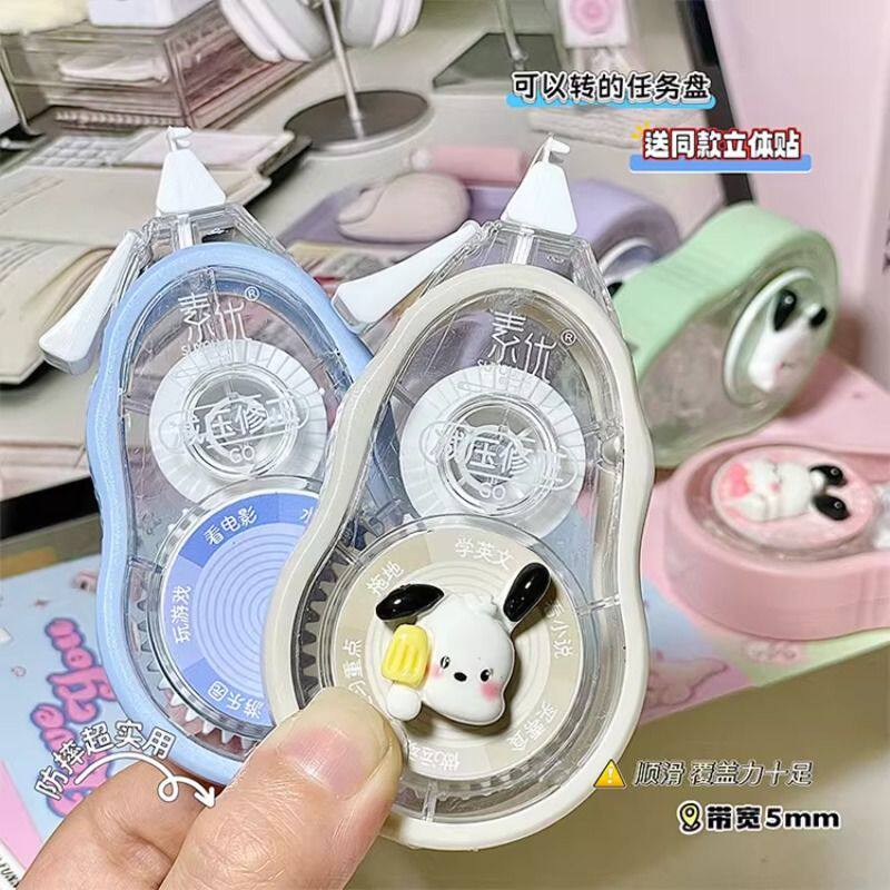 帕恰狗卡通修正带学生用大容量顺滑静音翻盖式涂改带高颜值森系改正带防摔设计