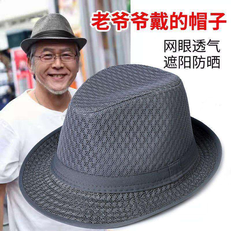 新款夏季网子礼帽透气遮阳爵士帽中老年渔夫帽男帽爷爷帽