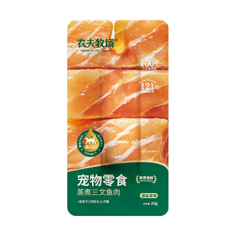 农夫牧场蒸煮三文鱼宠物零食蒸煮鱼条喂猫喂狗用熟鱼肉营养湿粮包