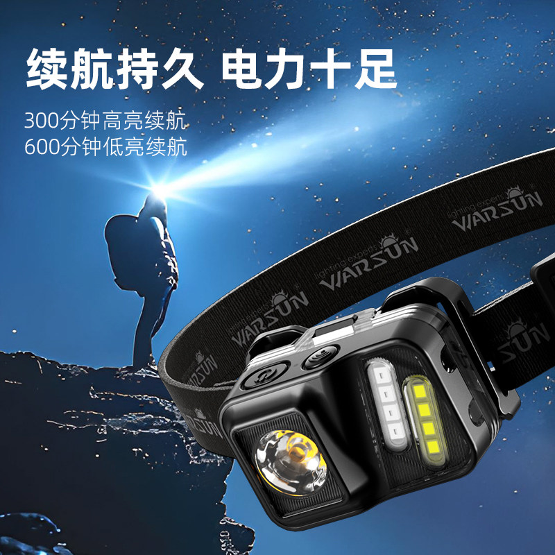 沃尔森头灯强光超亮超长续航登山户外感应充电头戴夜钓专用照明灯