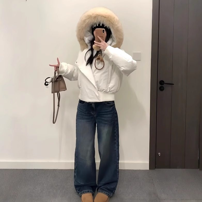 高级感2025冬季新款毛领羽绒棉服女小个子短款连帽显瘦棉袄厚外套