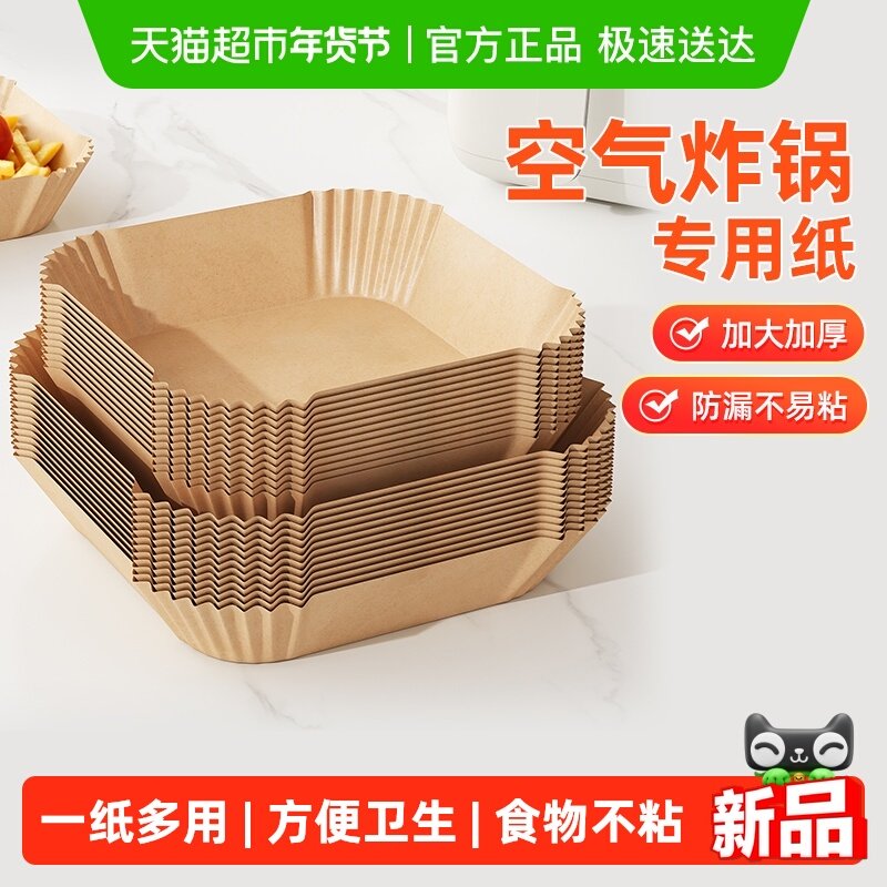 美丽雅空气炸锅专用纸烤盘烤箱耐高温吸油纸食品级加厚锡纸方形