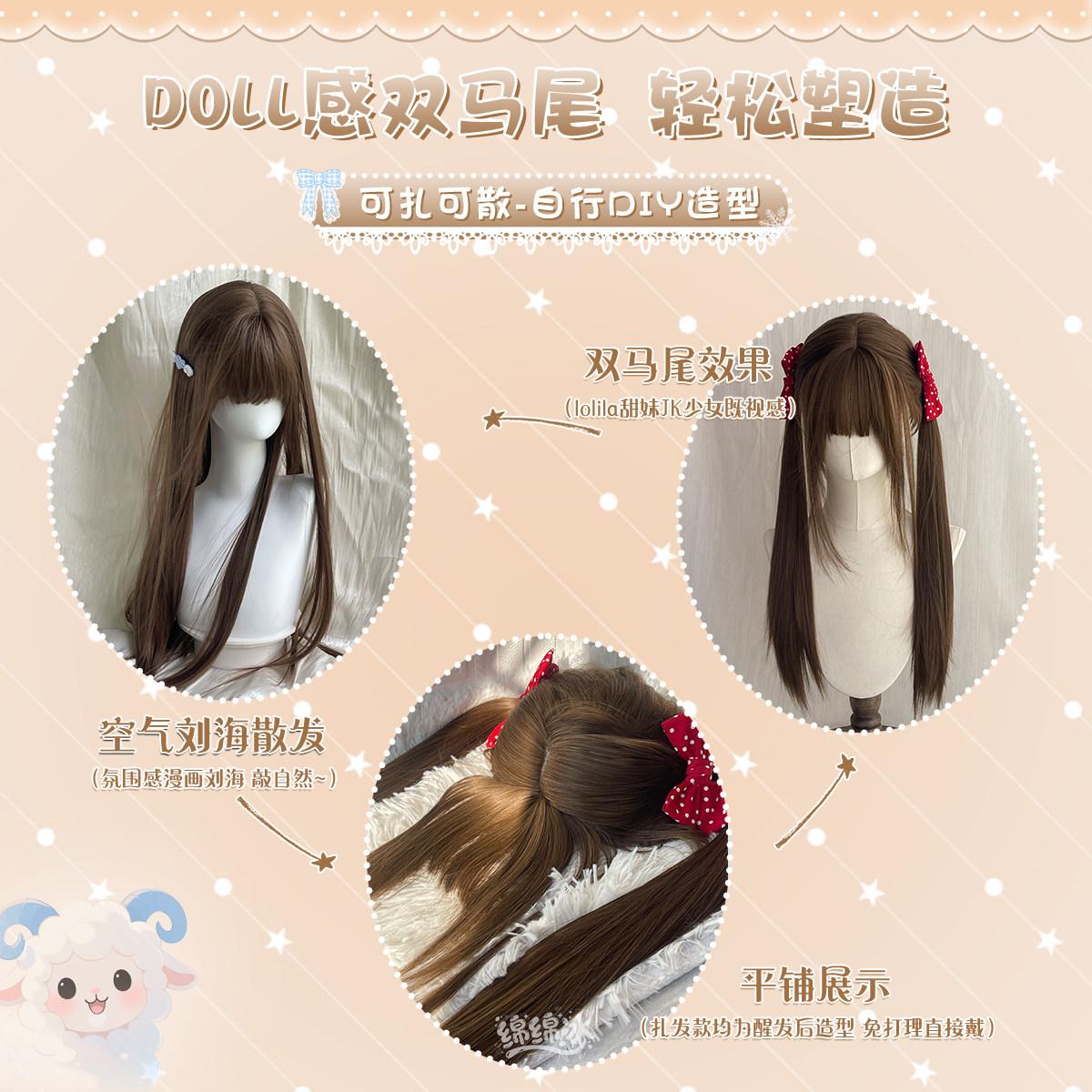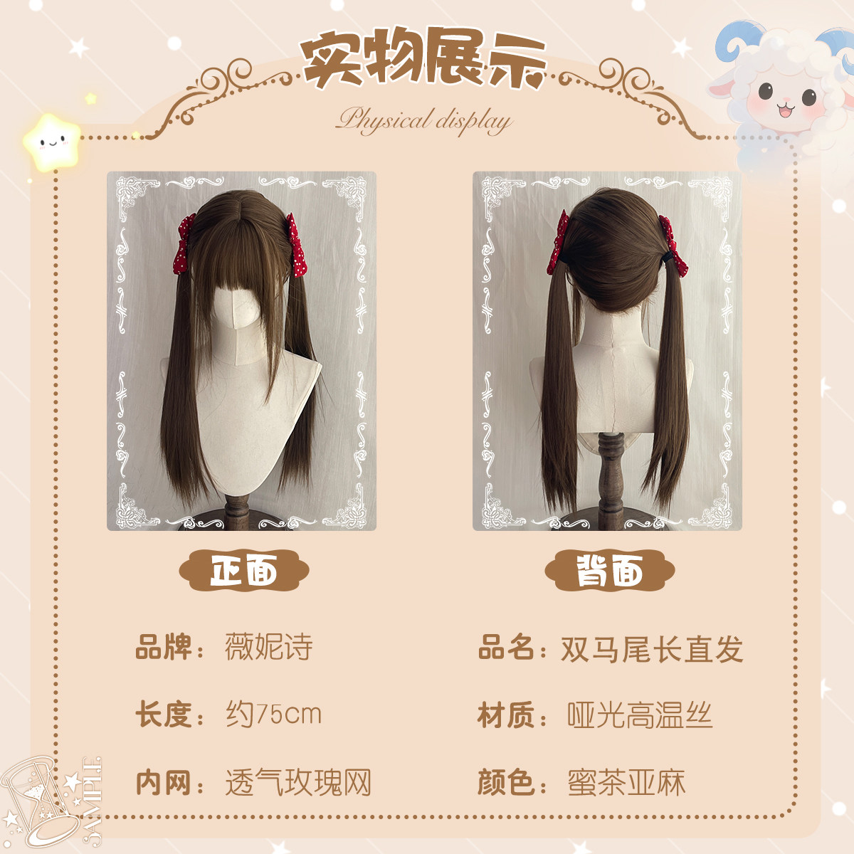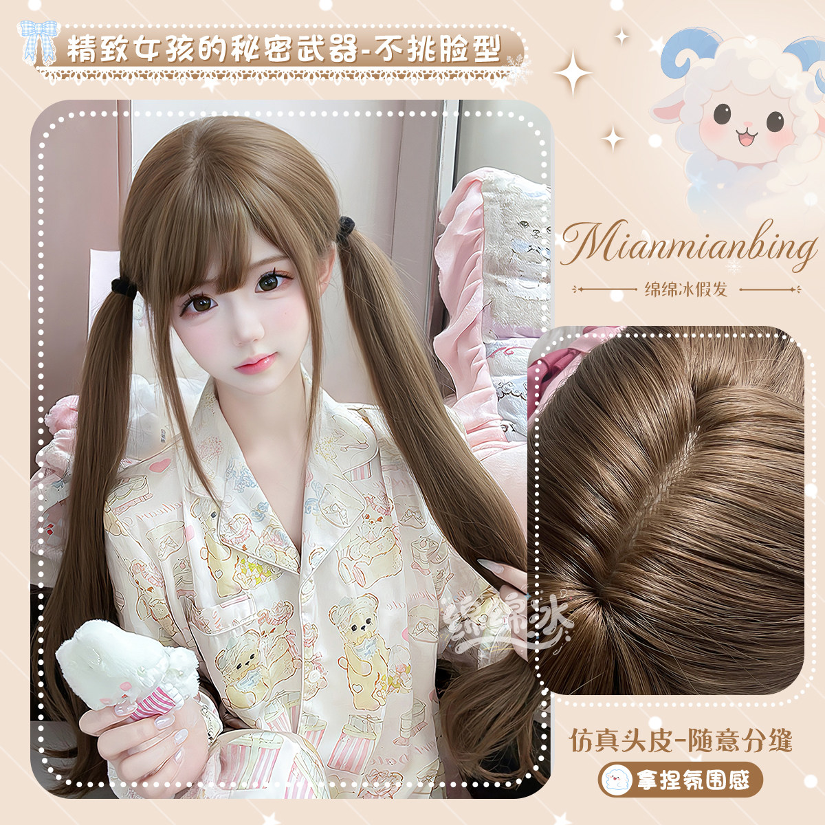 【杏仁奶酥】绵绵冰假发女75cm精修鬓角双马尾扎好发Lolita长直发