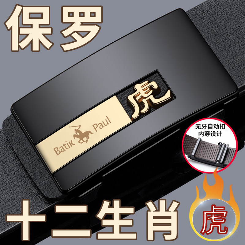 保罗男士皮带时尚舒适腰带无牙自动扣商务休闲潮流十二生肖裤带