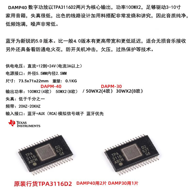 BRZHIFI 钛金DAMP-40 双核100W+100W 2.0数字功放 功放机 蓝牙5.0