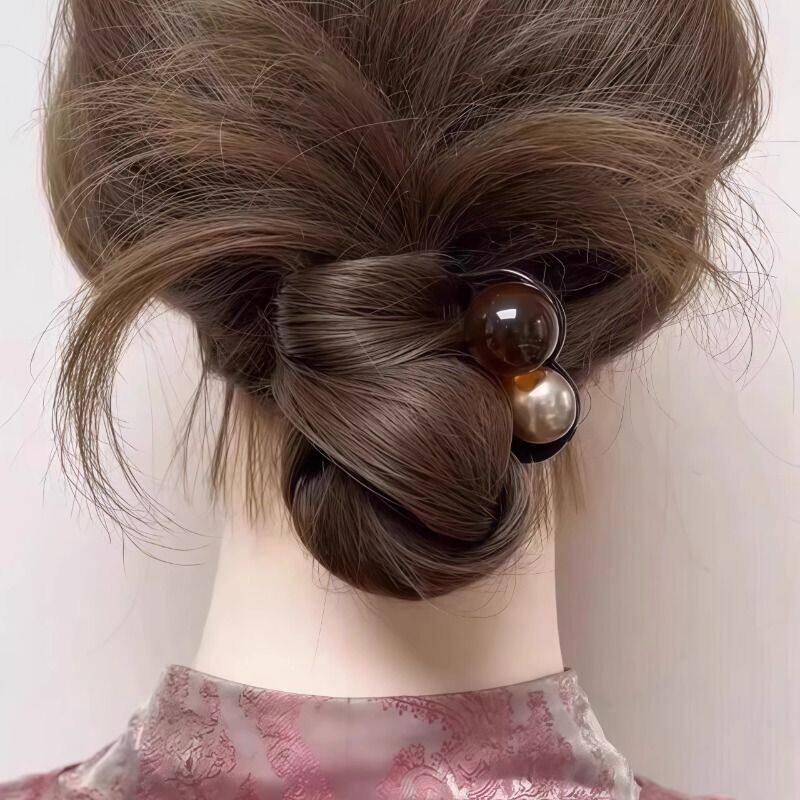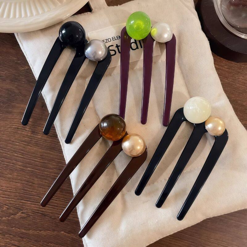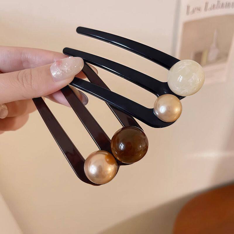 短发半扎发三齿珠珠U型发簪2026新款插梳发卡丸子头簪子盘发神器