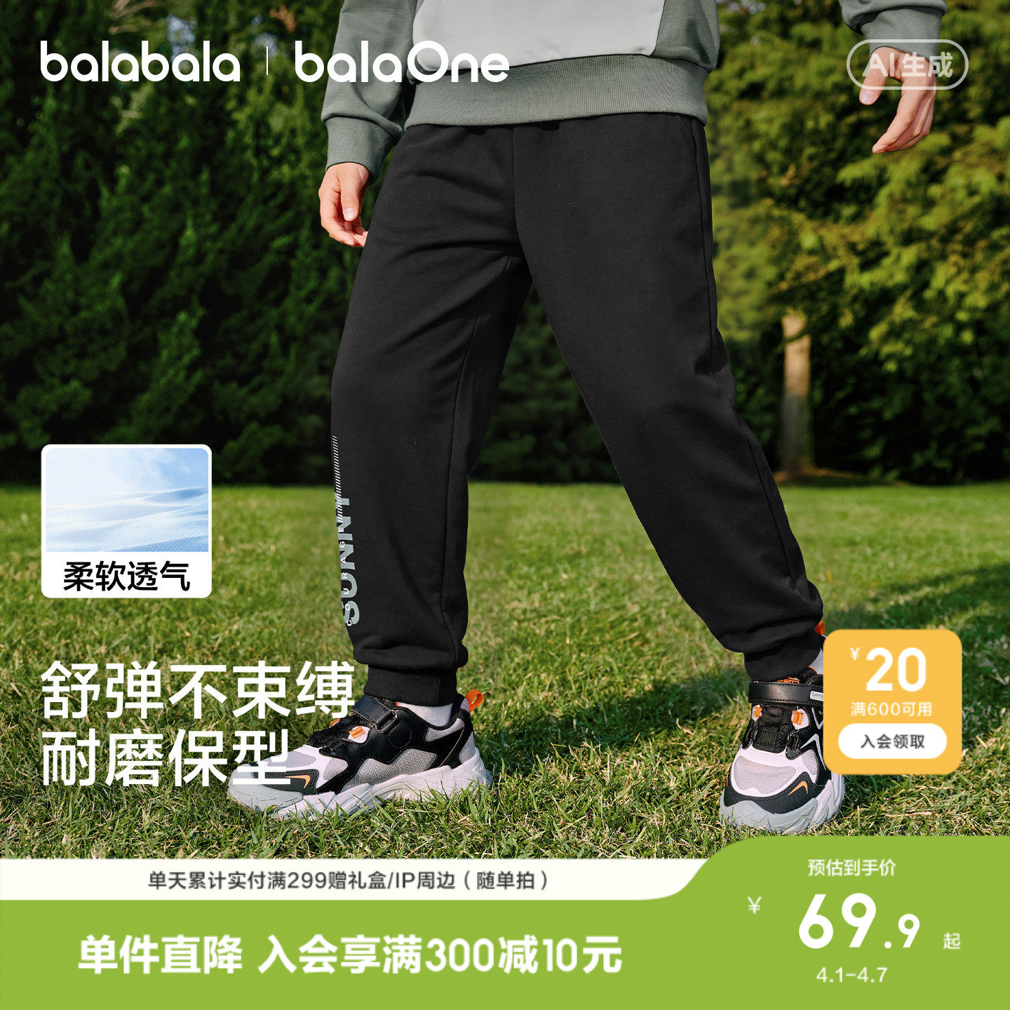巴拉巴拉童装男童长裤儿童裤子2026春夏女童中大童运动休闲裤百搭
