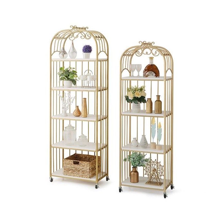 新复古铁艺鸟笼置物架落地花架实木书架客厅置物架卧室木板展示架