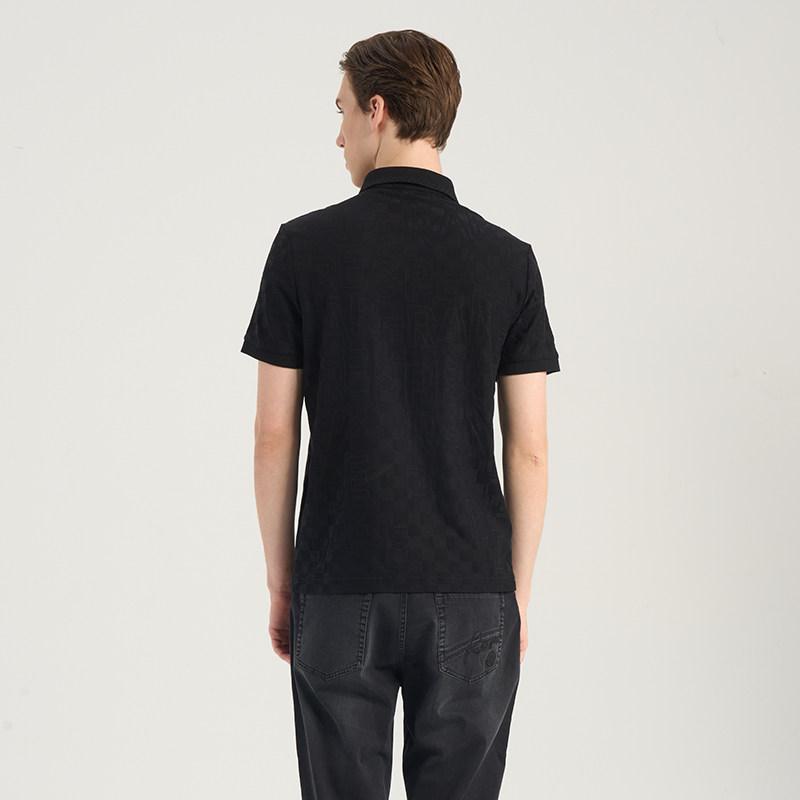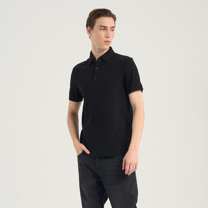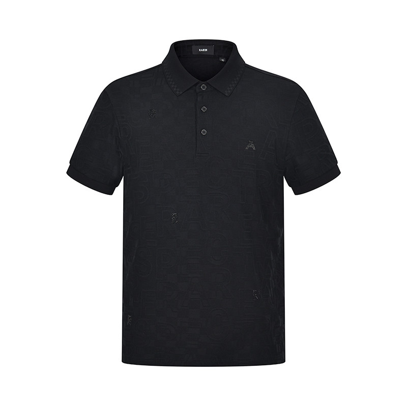 RARE威雅男装 夏季新款POLO衫几何图案提花黑色翻领短袖T恤