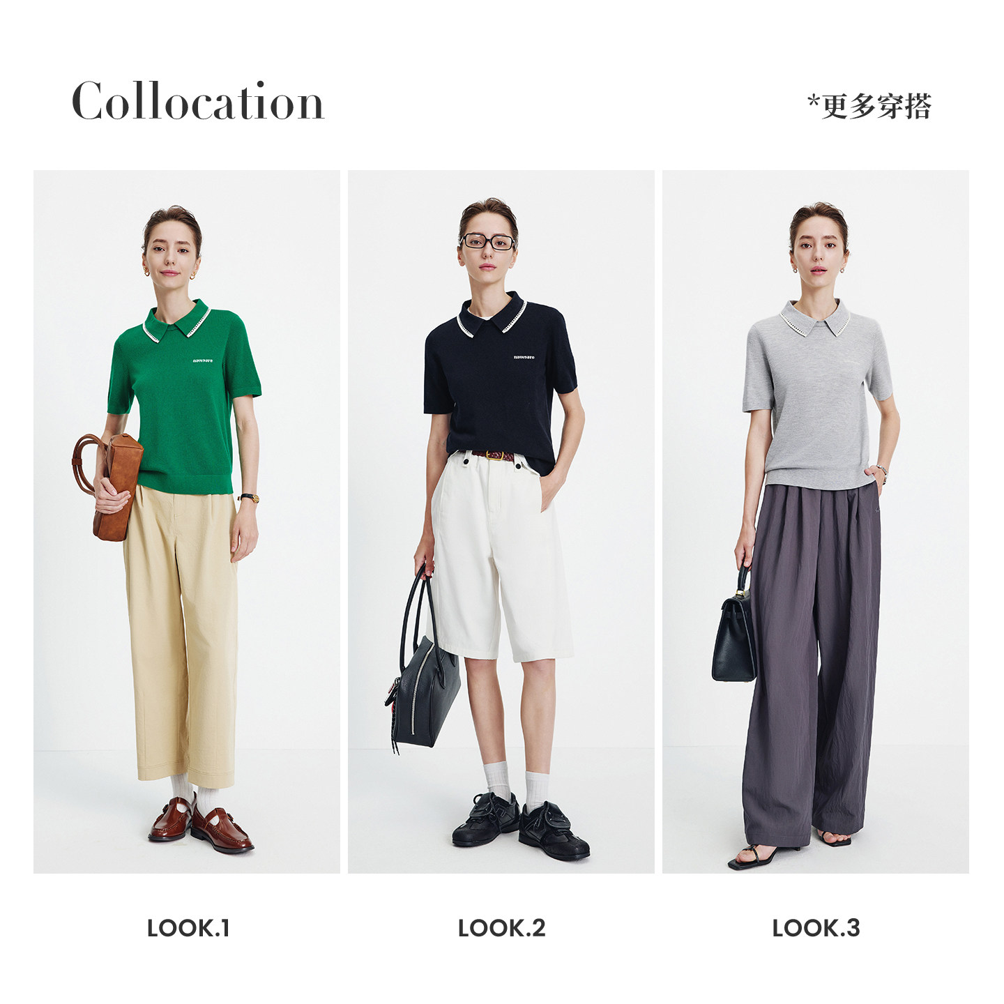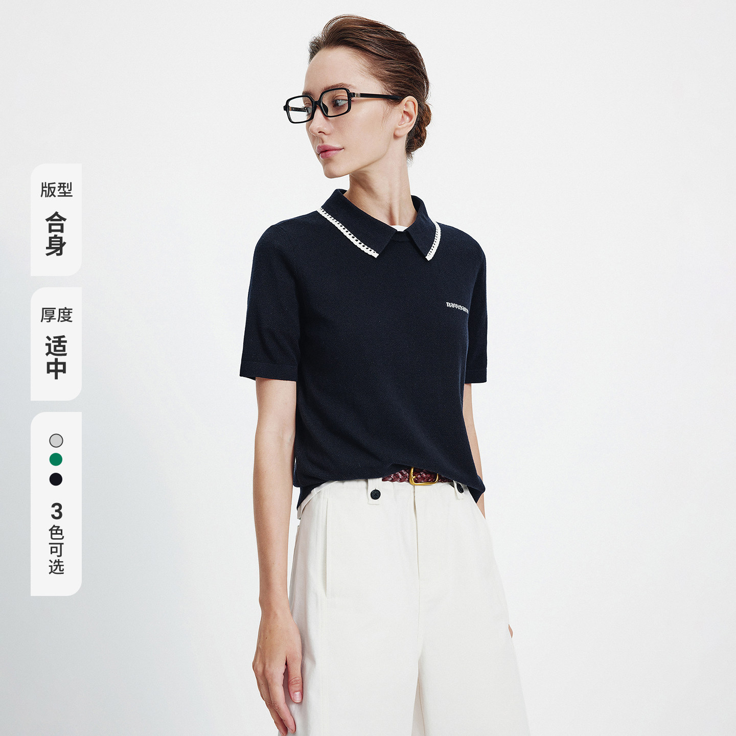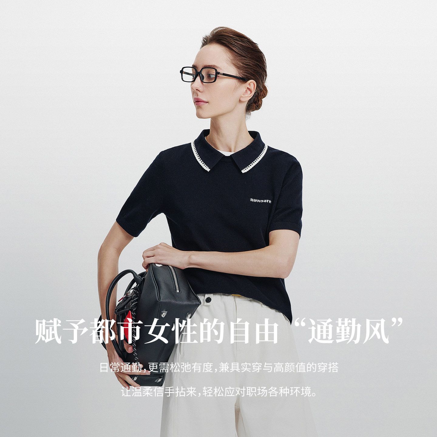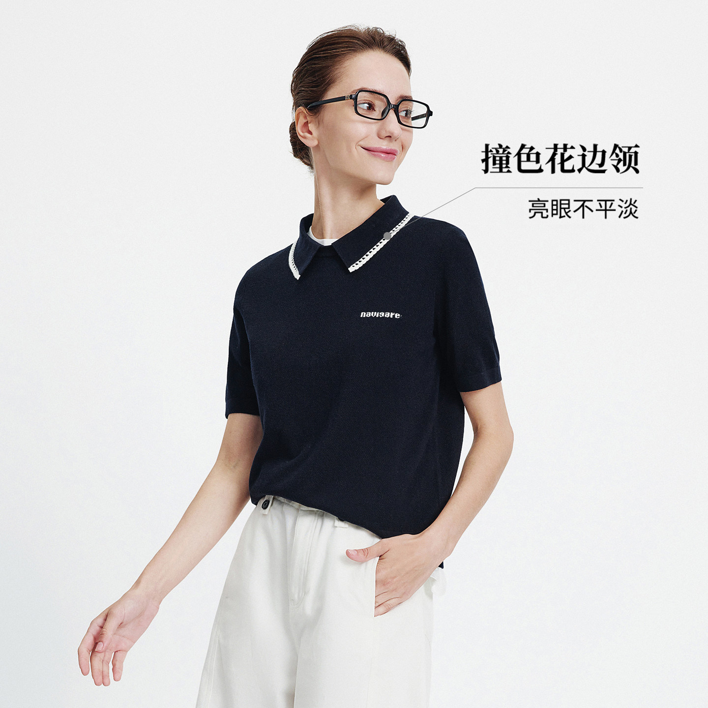 Navigare意大利小帆船短袖针织POLO衫女2026夏季新款翻领通勤毛衣