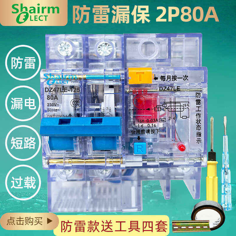德力西空气开关带漏电保护器2P63A家用漏保32a断路器空调空开220V