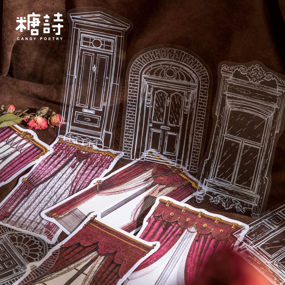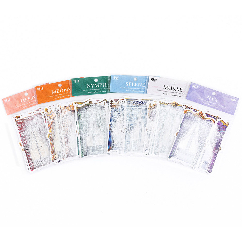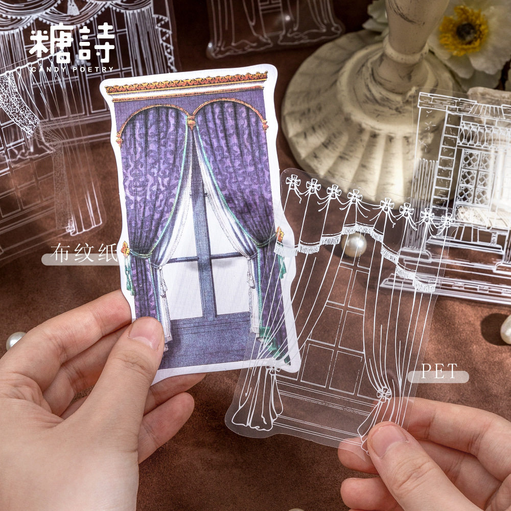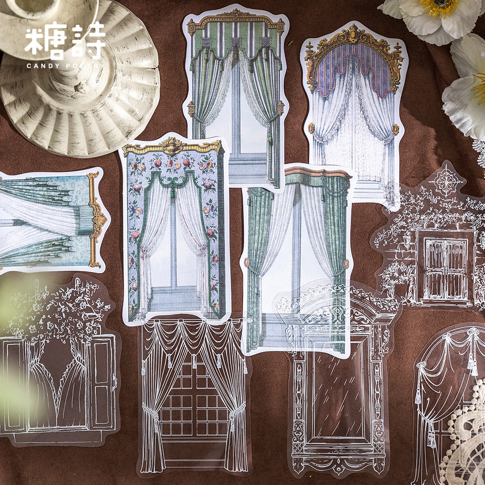 糖诗PET贴纸包 蕾丝花窗系列 复古手账DIY素材装饰贴画10张入 6款
